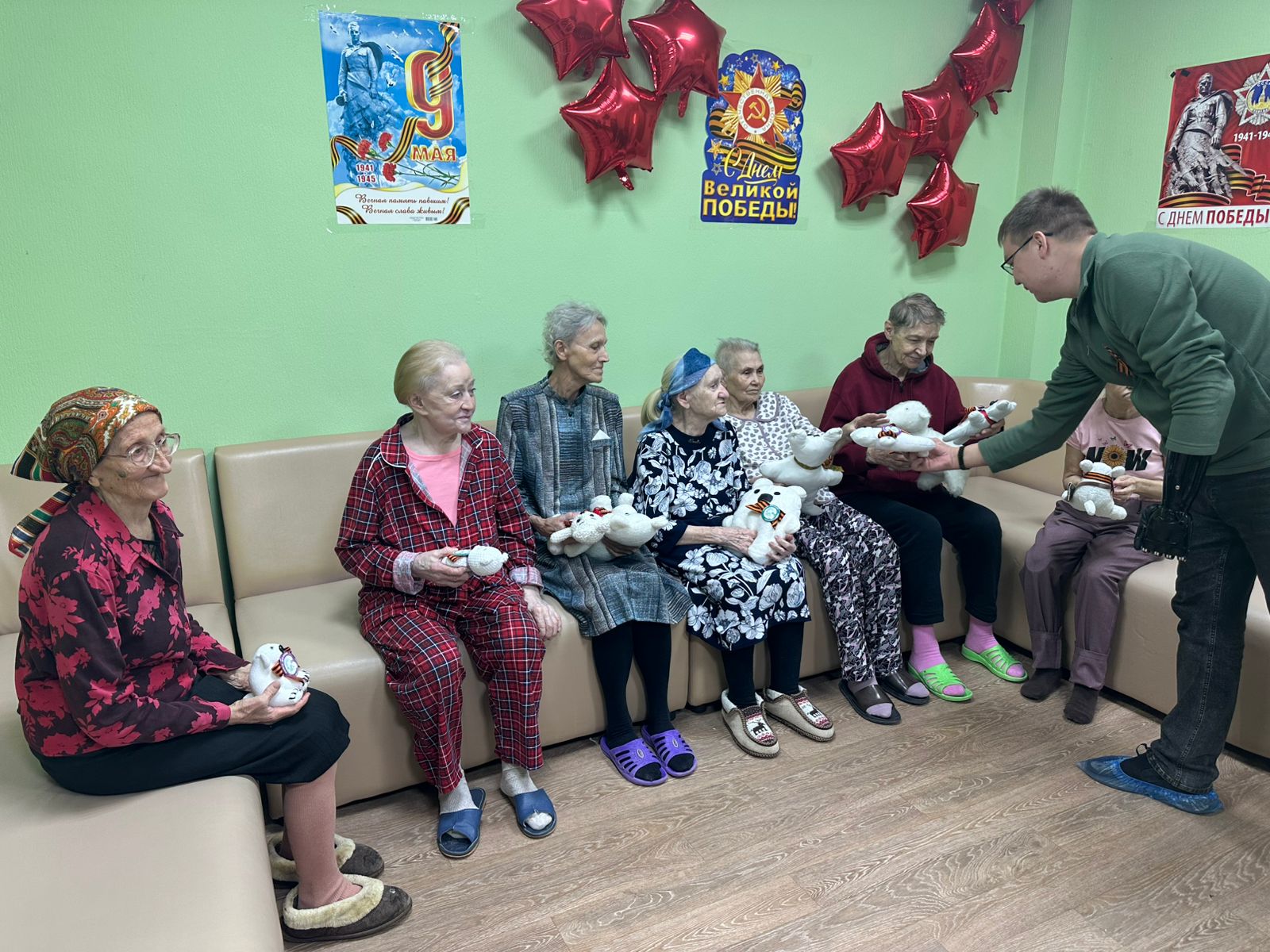 В пансионатах постоянно проживают 300 пожилых людей, которым требуется постоянный уход и внимание. Постояльцев поздравили с праздником, пожелали крепкого здоровья, хорошего настроения и, конечно же, подарили 300 белых медведей, сделанных руками детей из разных регионов России в рамках доброй акции Росприроднадзора «Игрушка ветерану».