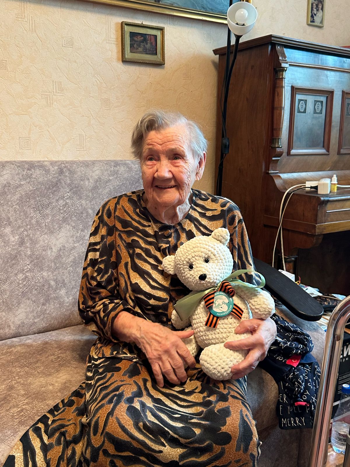 Сотрудники выразили бесконечную Благодарность, пожелания крепкого здоровья и в рамках акции «Игрушка ветерану» вручили Нине Трофимовне символ премии «Экология - дело каждого» белого медвежонка.