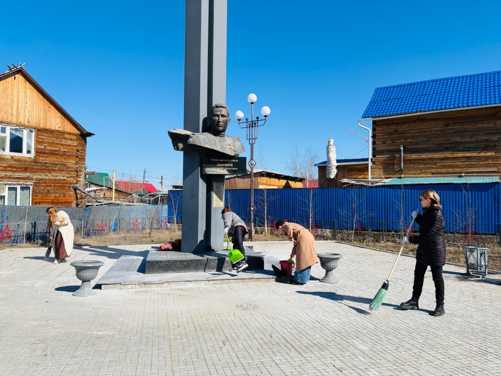 В преддверии 80-летия Победы в Великой Отечественной Войне сотрудники Управления Росприроднадзора по Республике Саха (Якутия), провели субботник на территории сквера Героя Советского Союза – Владимира Лонгинова в Сайсарском округе г. Якутска.