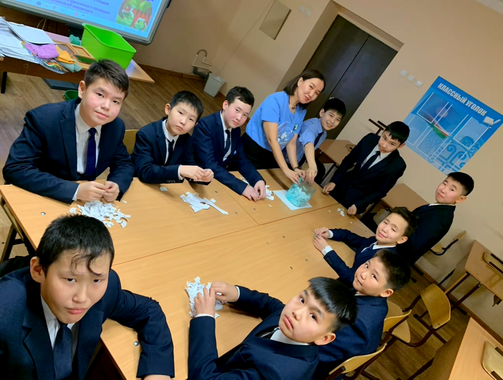 При поддержке Управления Росприроднадзора по Республике Саха (Якутия) педагог и волонтер Международной детско-юношеской премии «Экология – дело каждого» и дважды обладательница спецпризов Надежда Харитонова провела для учеников 6 класса Мюрюнской юношеской гимназии им. В.В. Алексеева в с. Борогонцы мастер-класс по переработке старой бумаги и созданию новых бумажных листов.