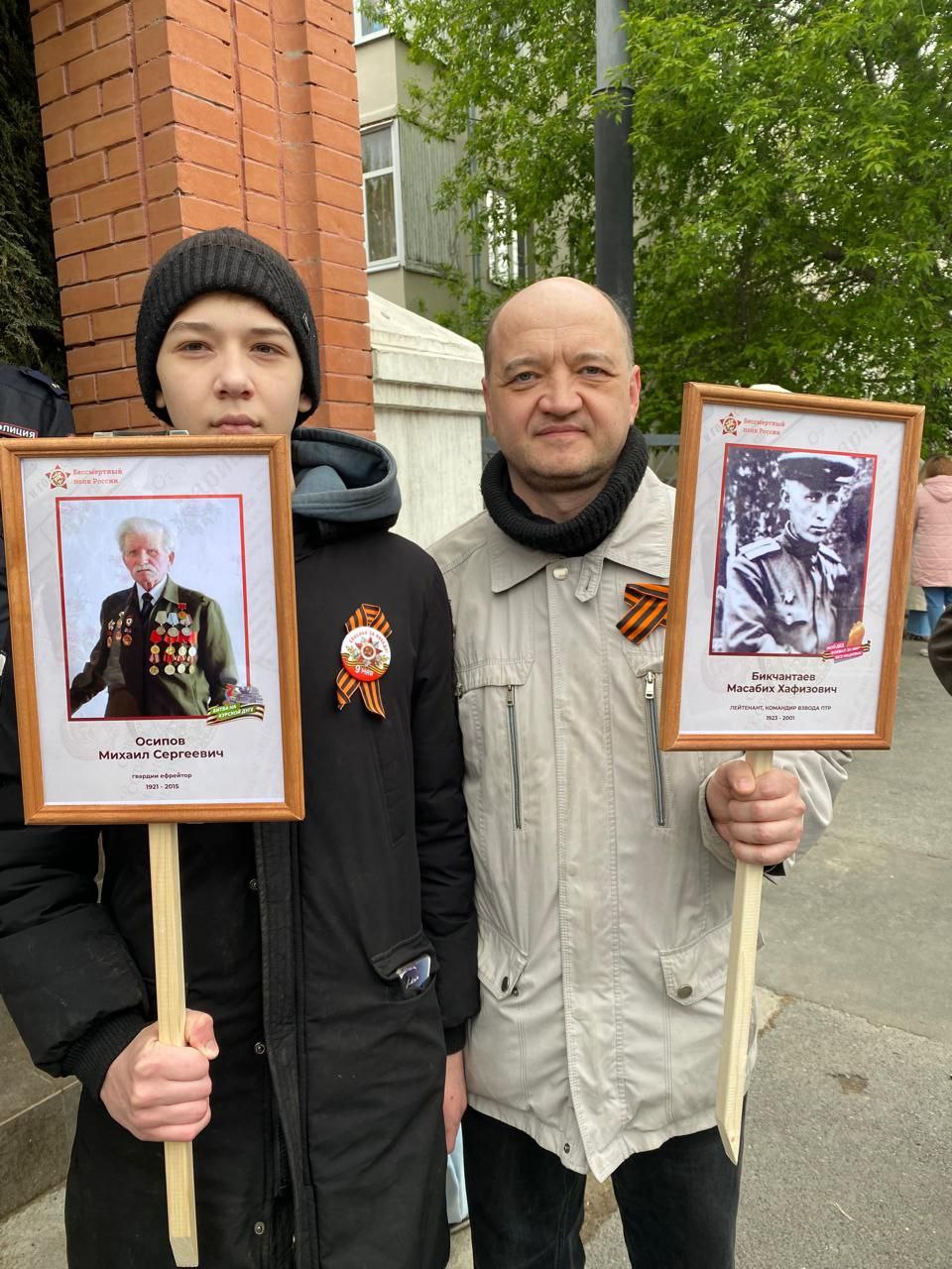 С портретами своих родных — участников Великой Отечественной войны — сотрудники прошли по центральным улицам города, отдавая дань памяти и уважения тем, кто сражался за мирное небо над головой.