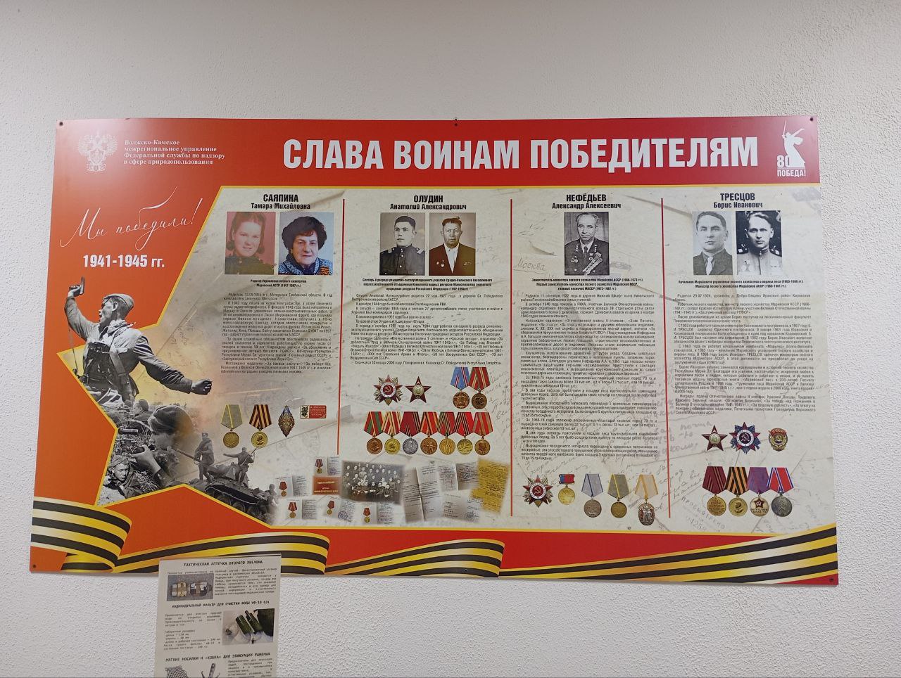 В преддверии великого юбилея - 80-летия Победы в Великой Отечественной войне в стенах Волжско-Камского межрегионального управления Росприроднадзора появилось особенное место памяти – музейная экспозиция.