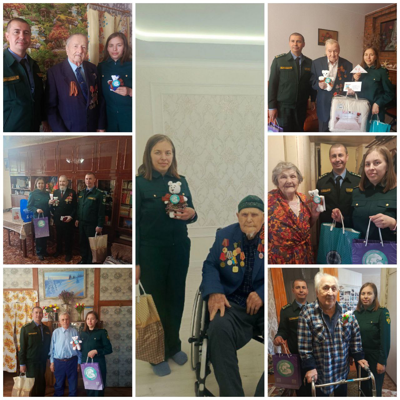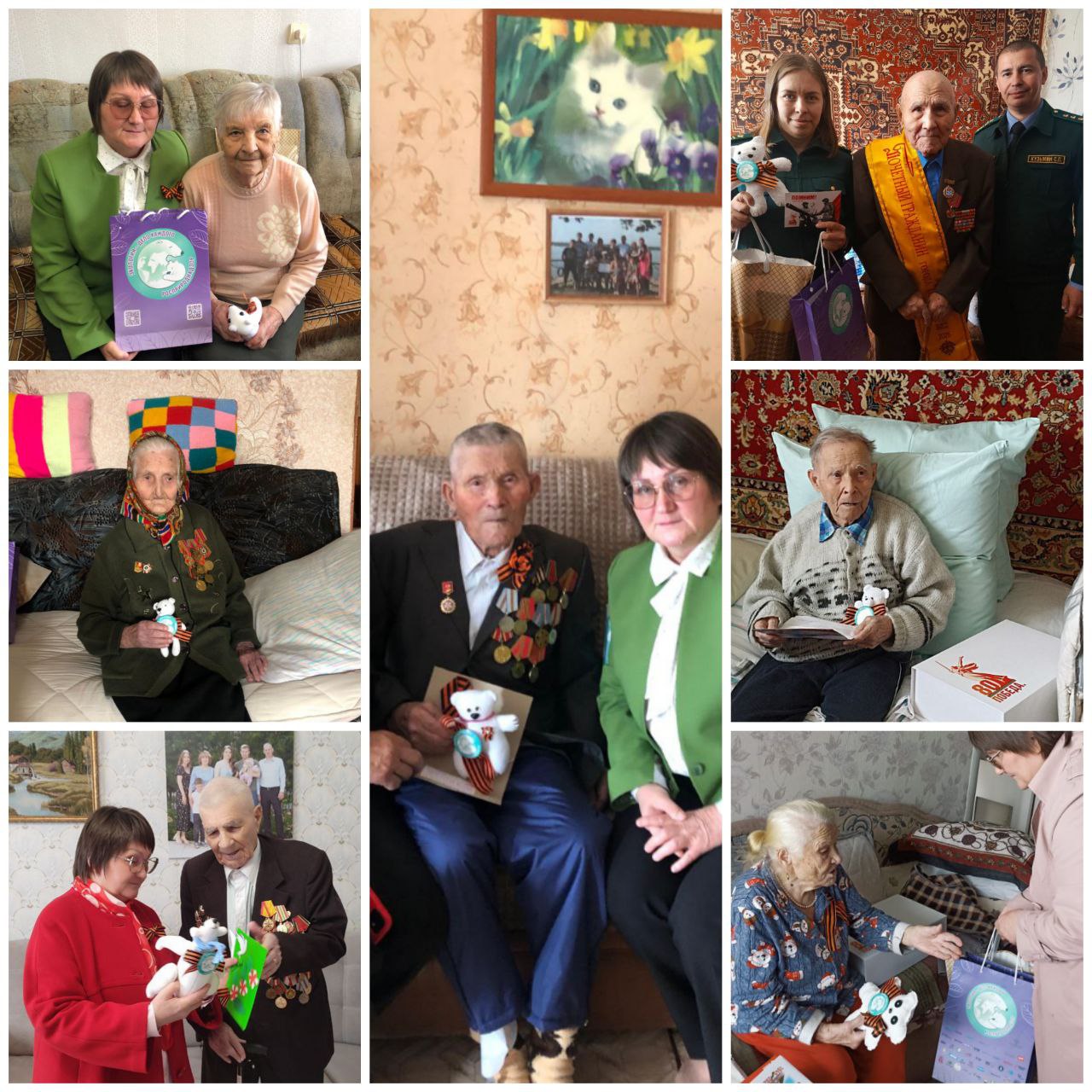 В рамках торжественных визитов ветеранам были вручены памятные подарки и символичные белые медведи – мягкие игрушки, созданные в рамках всероссийской акции "Игрушка ветерану". Эти плюшевые талисманы, изготовленные руками детей, стали трогательным символом связи поколений и народной благодарности.