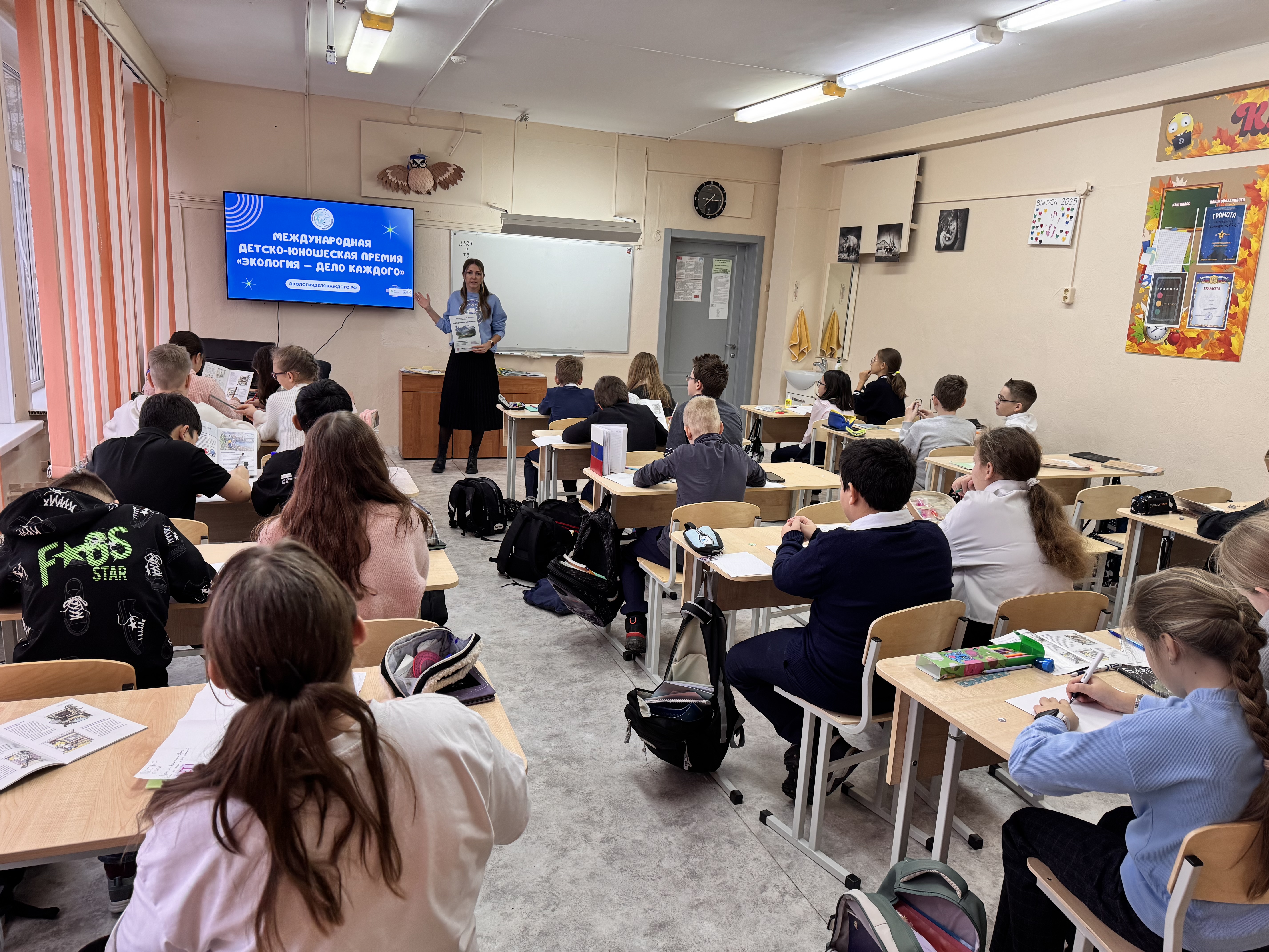 Сотрудники Енисейского межрегионального управления Росприроднадзора презентовали международную детско-юношескую премию «Экология – дело каждого» ученикам пятых, шестых и седьмых классов в средней школе № 7 г. Красноярска и пригласили принять участие.