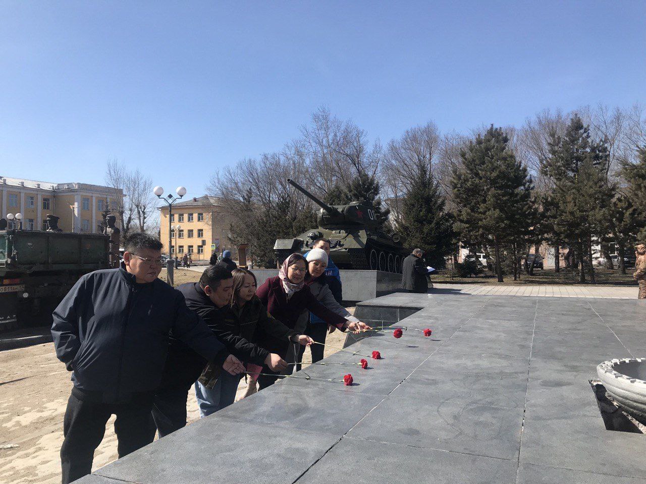 Сотрудники Росприроднадзора возложили цветы к памятнику Неизвестного солдата в Мемориальном комплексе «Площадь Победы» в г. Кызыле