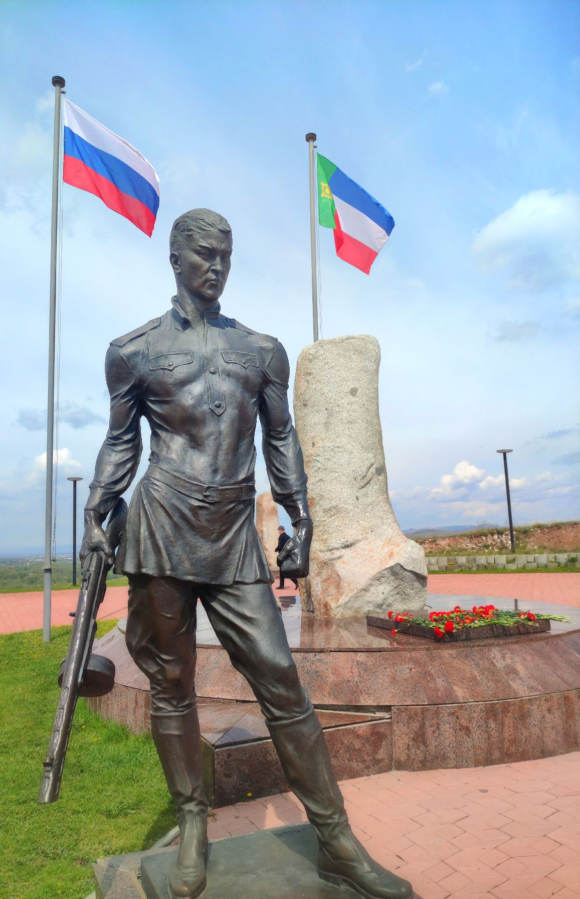 Мемориальный комплекс посвящён памяти погибших при защите Отечества. Скульптура молодого воина является символом стойкости воинов из Хакасии и преемственности поколений, защищавших Отечество в разные эпохи. Восемь каменных стел символизируют восемь районов Хакасии. Рядом с каждым камнем установлена мемориальная доска с указанием количества солдат, призванных из каждого района республики и павших на полях сражений Великой Отечественной войны.