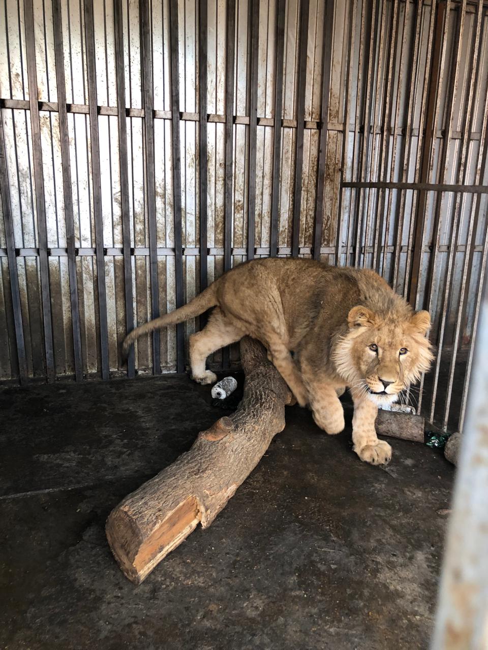 Животное - полуторагодовалый лев по кличке Симба, содержится в специально оборудованном вольере, состоящем из двух секций. Несмотря на то, что владелец утверждает о надлежащем уходе и сбалансированном рационе, сам факт содержания льва в частном владении является недопустимым. Визуальный осмотр показал, что лев находится в хорошем состоянии, выглядит здоровым, проявляет игривость и не демонстрирует агрессии, однако это не отменяет необходимости принятия мер по его изъятию и передаче в специализированное учреждение, имеющее соответствующие условия для содержания диких животных.