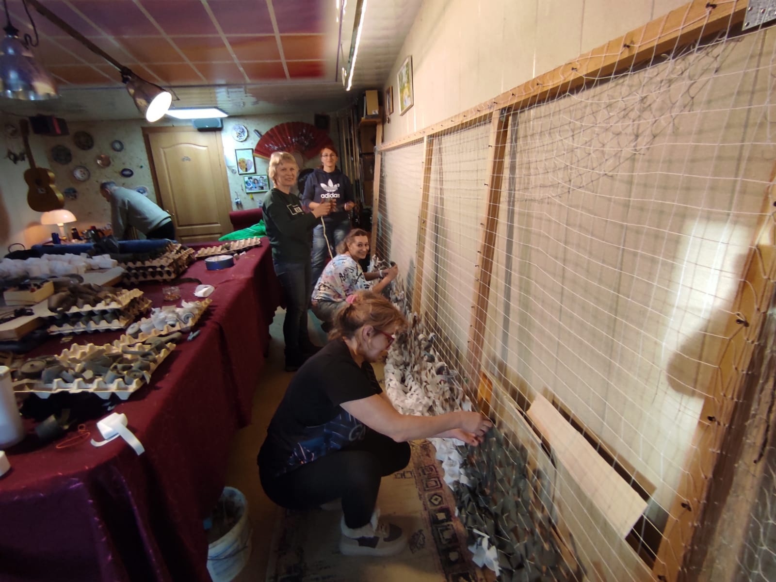 Сотрудники занимаются изготовлением различных предметов, которые могут оказаться полезными на фронте, таких как сухие души и сушилки для обуви. Кроме того, они занимаются плетением маскировочных сетей, что помогает защитить солдат от наблюдения противника. Креативный подход и мастерство сотрудников в создании таких сетей доказывают, что даже небольшие усилия могут внести значимый вклад в общую безопасность. Также изготавливают стельки для обуви, которые обеспечивают комфортное ношение и помогают предотвратить различные травмы, возникающие от долгого пребывания на ногах в тяжелых условиях. Особое внимание заслуживает изготовление блиндажных свечей, что также играет важную роль в обеспечении комфортных условий для военнослужащих.