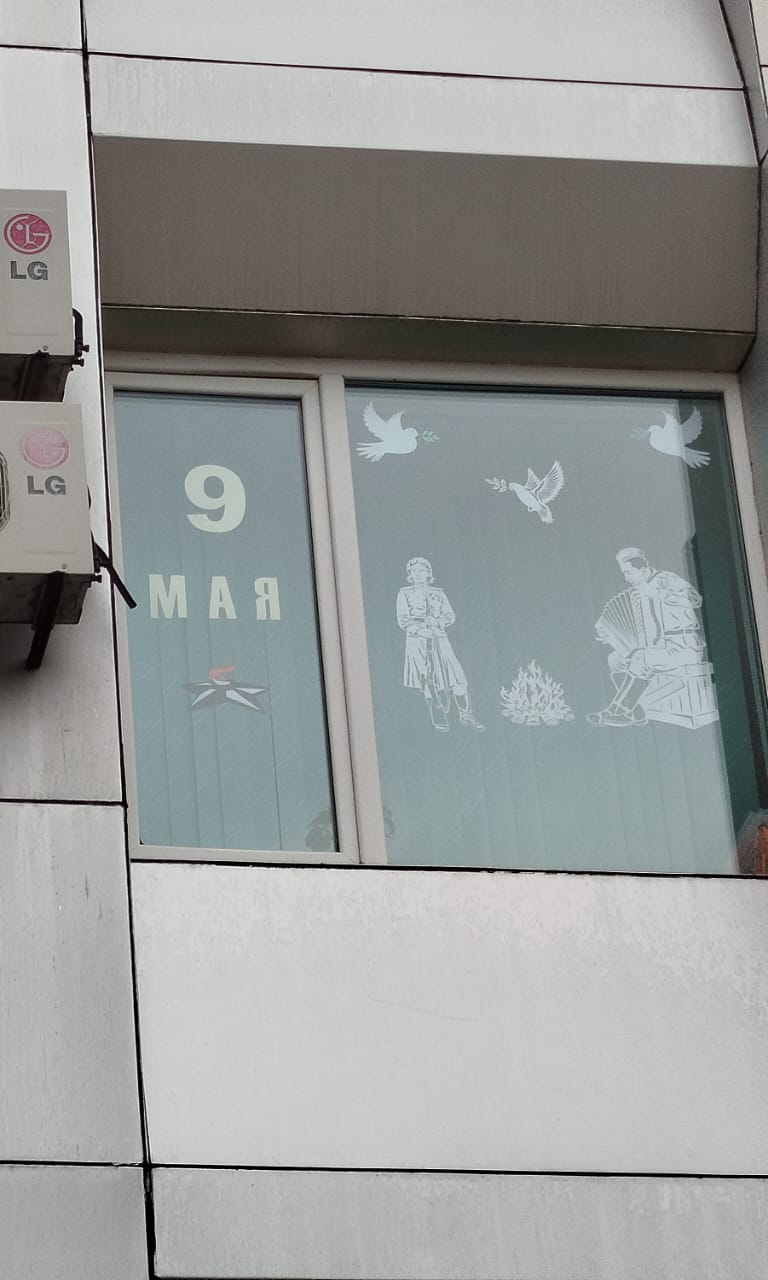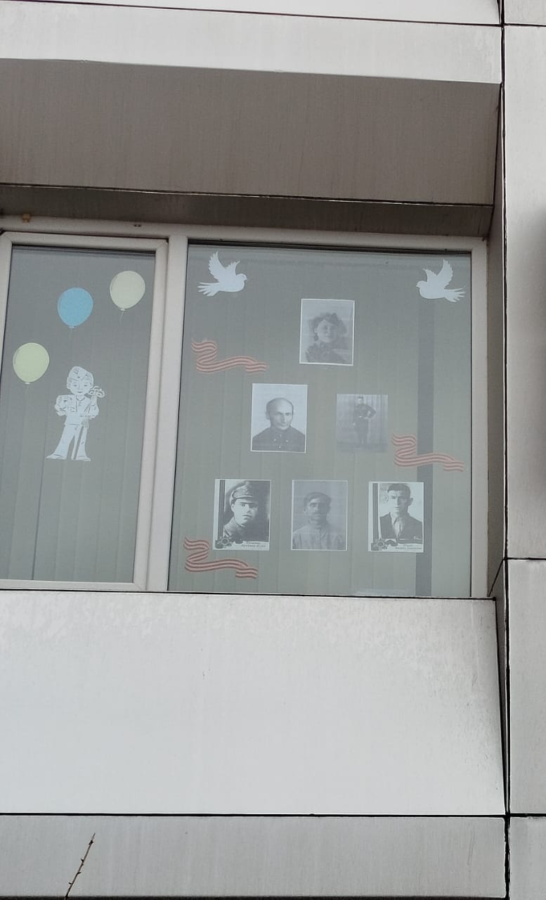 Сотрудниками украшены окна изображениями цветов, георгиевских лент, голубей мира, фотографий родных, отдавших жизнь за Родину. Это стало своеобразной данью уважения и благодарности тем, кто сражался за нашу свободу и мирное небо над головой.