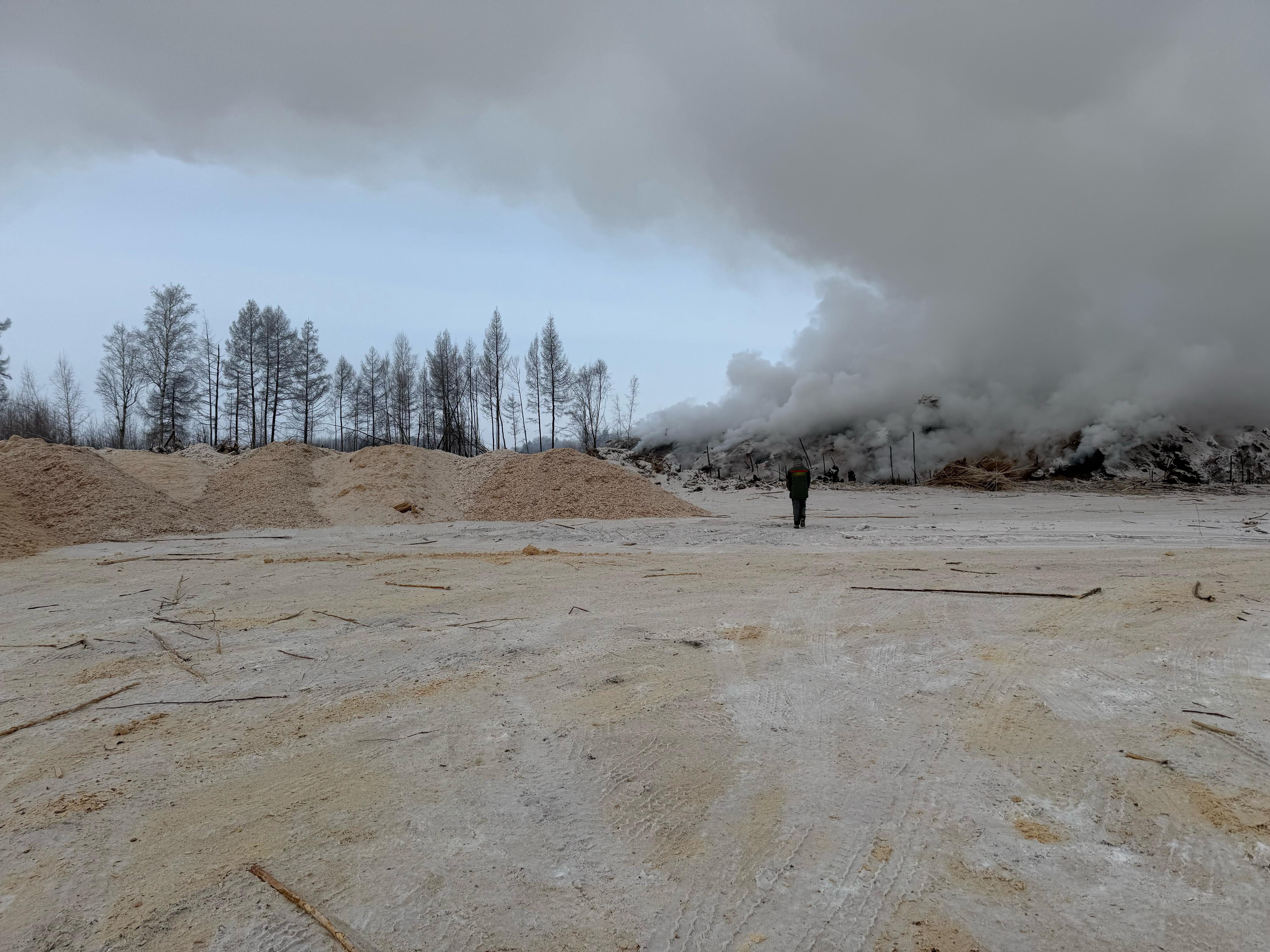 На участке площадью более 66 тысяч м² обнаружены многочисленные очаги тления опилок, стружки и щепы. Отобрали необходимые пробы, результаты их анализов позволят оценить масштаб экологического вреда.