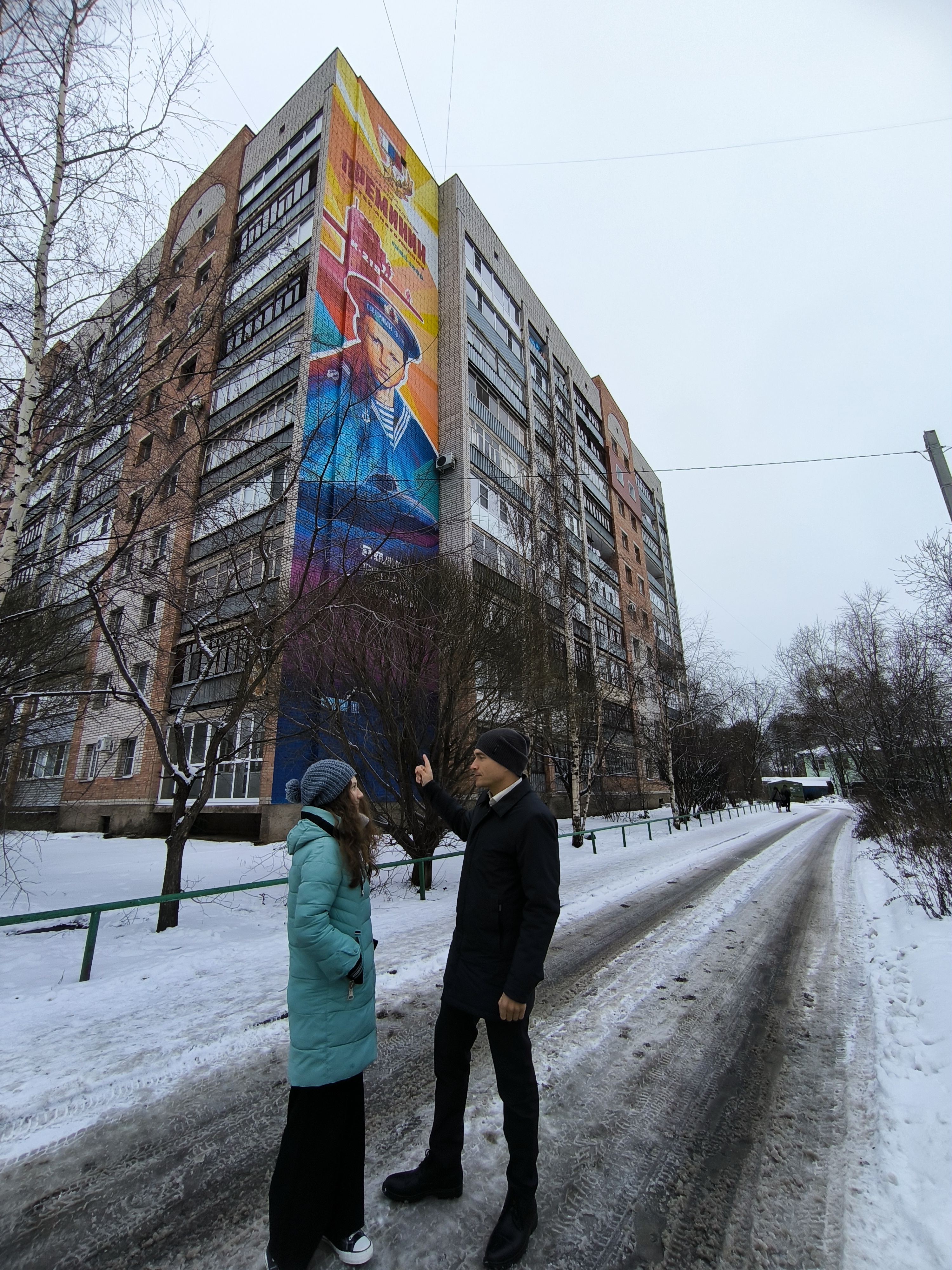 Заместитель руководителя Северного межрегионального управления Росприроднадзора Павел Соколов с дочерью посетили мурал, посвящённый Герою России Сергею Преминину. Памятное граффити создано на фасаде дома по улице, названной в честь героя-подводника.