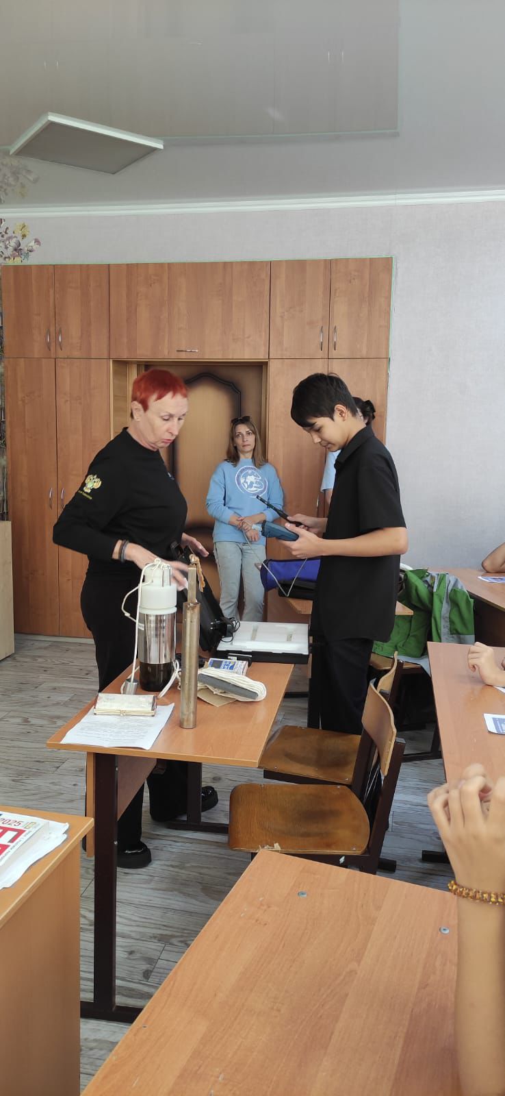 В рамках дискуссии сотрудники Управления обсудили с ребятами актуальные экологические проблемы, специалисты лаборатории ЦЛАТИ по Астраханской области продемонстрировали ребятам метеометр и устройство для отбора воды природной поверхностной и подземной.