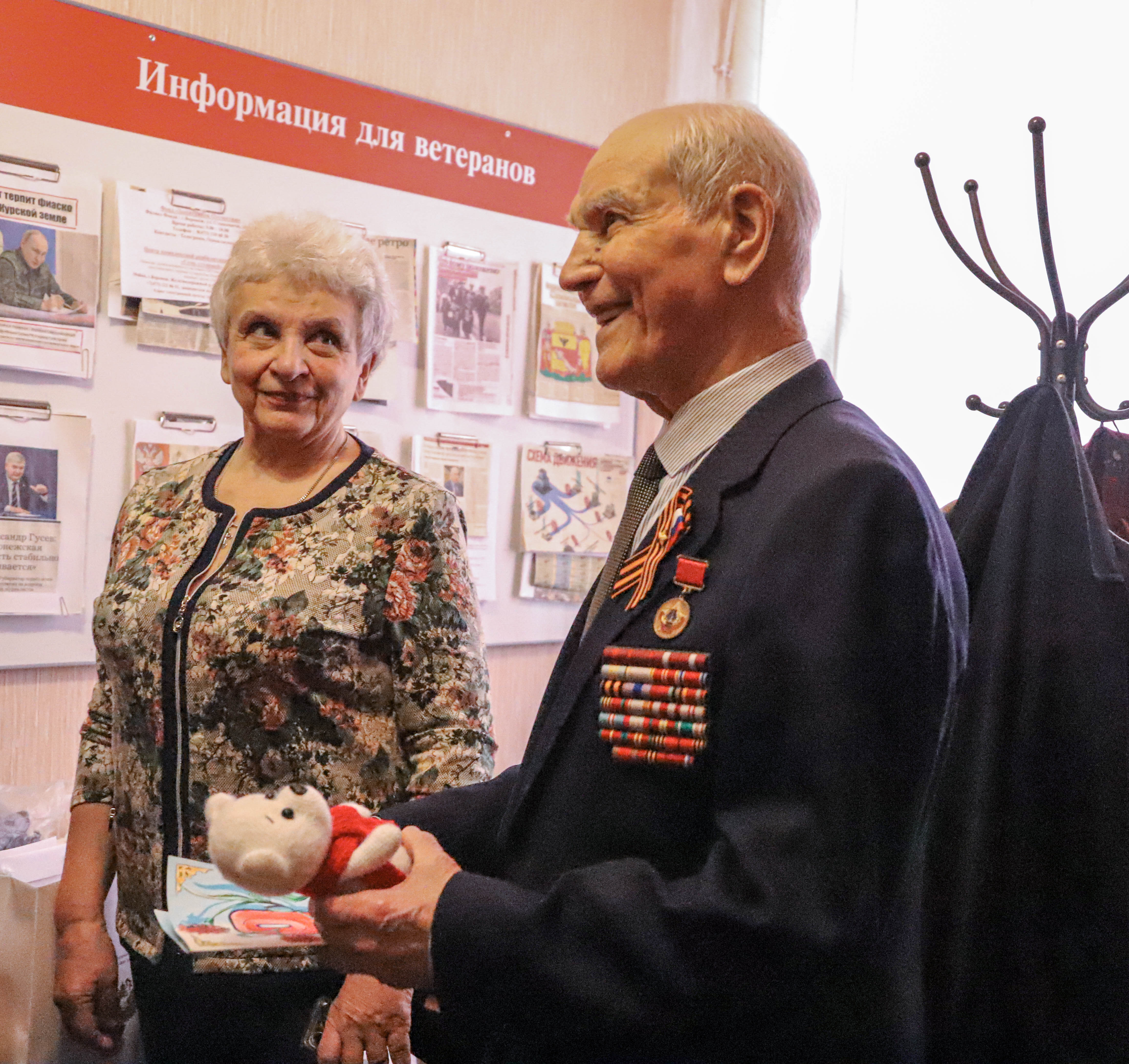Руководитель Управления вручил Николаю Борисову открытку и белого мишку Умку – символа Премии, которого сделали дети для того, чтобы передать дорогим ветеранам свою частичку сердечного тепла и благодарности.