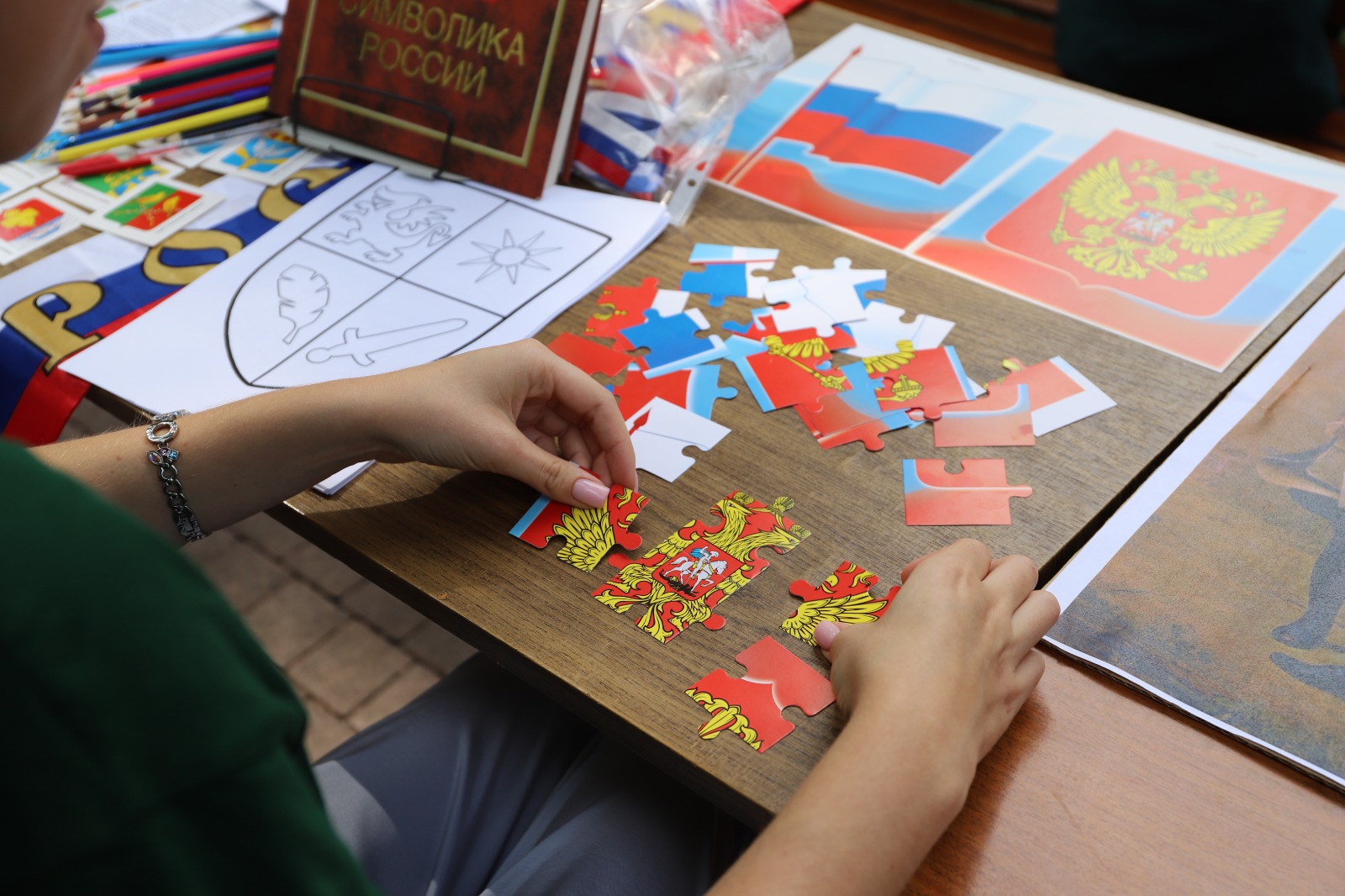 Также поучаствовали в интеллектуальных играх: «Мемо: флаги регионов России», «Геральдика Воронежской области», «Символы эпох», и мастер-классах по созданию оригинальных сувениров и открыток с российской символикой.