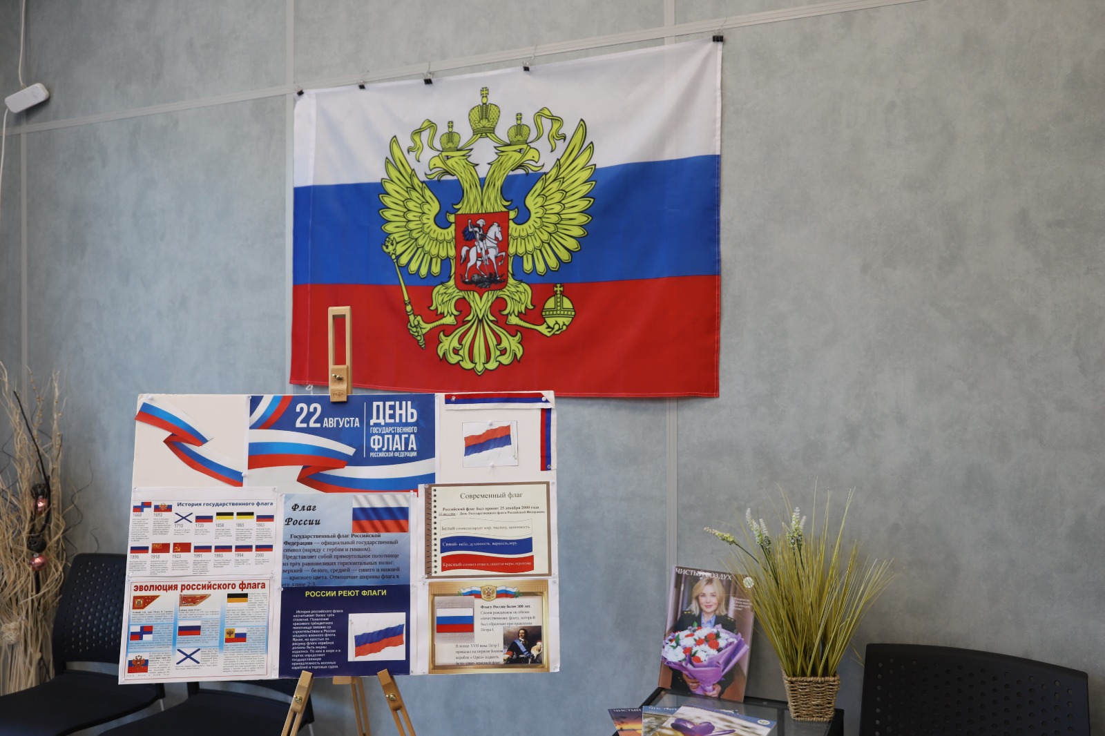 Также сотрудники Управления поддержали праздник, украсив помещения флагами и рисунками в цветах российского триколора.