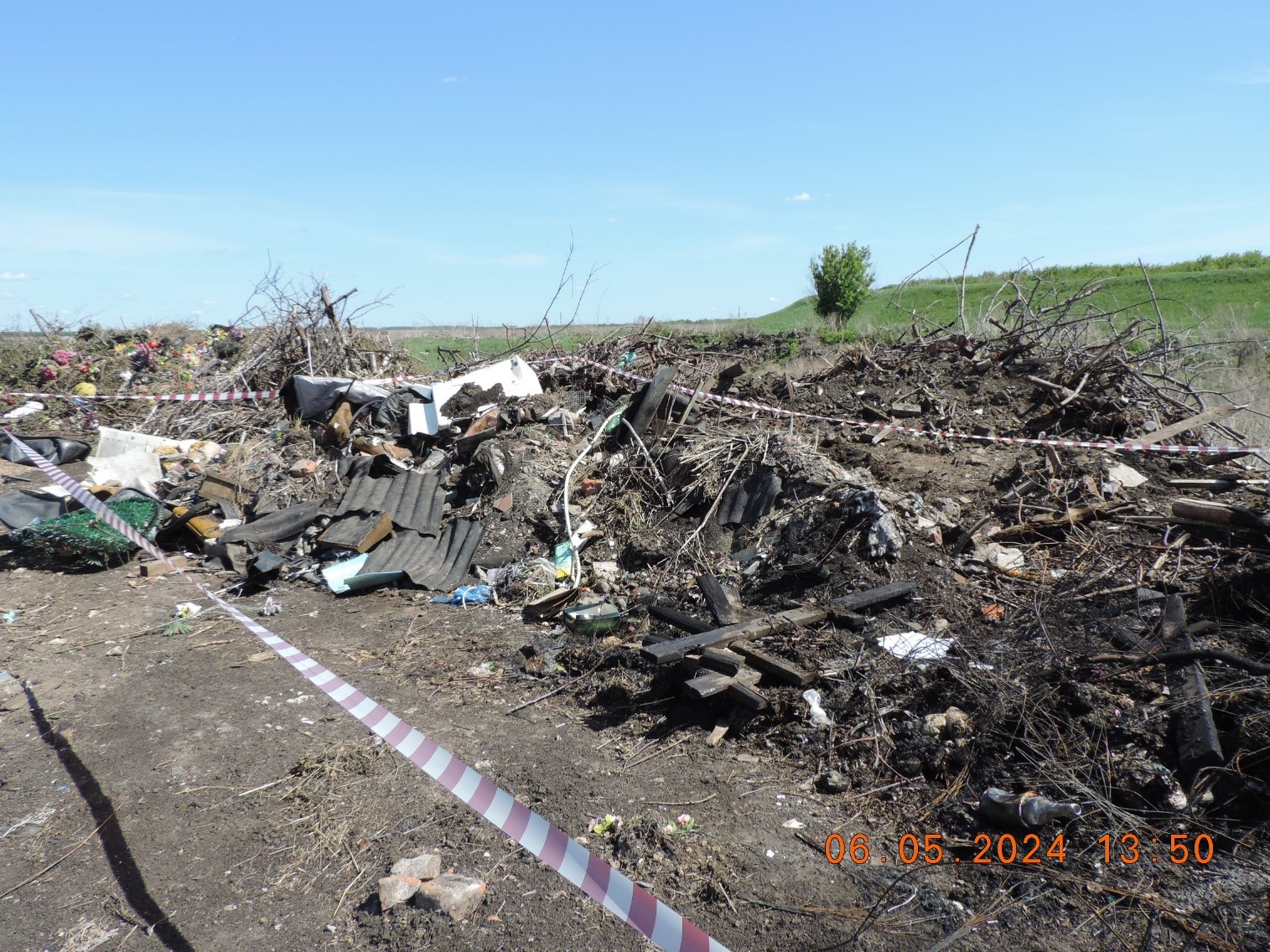 В ходе мероприятия данный факт подтвердился. Так, на участке площадью 350 м кв. обнаружены отходы от уборки территорий кладбищ, крупногабаритные, твердые коммунальные отходы, отработанные покрышки, тара полиэтиленовая, а также отходы, загрязненные нефтепродуктами.