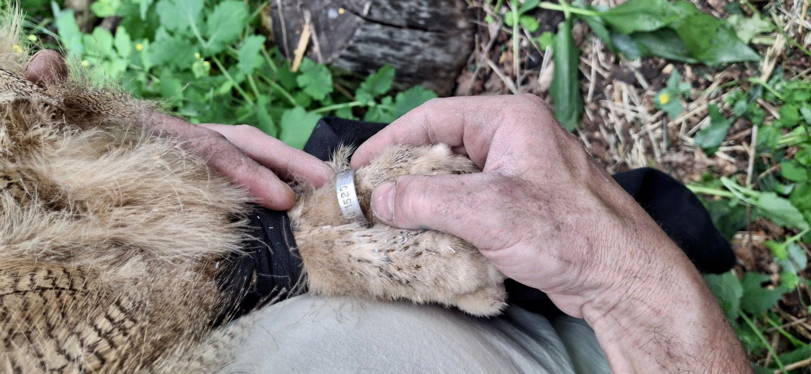 На лапы филинов надели кольца с индивидуальными номерами, что поможет учёным наблюдать за их перемещениями и поведением после выпуска.