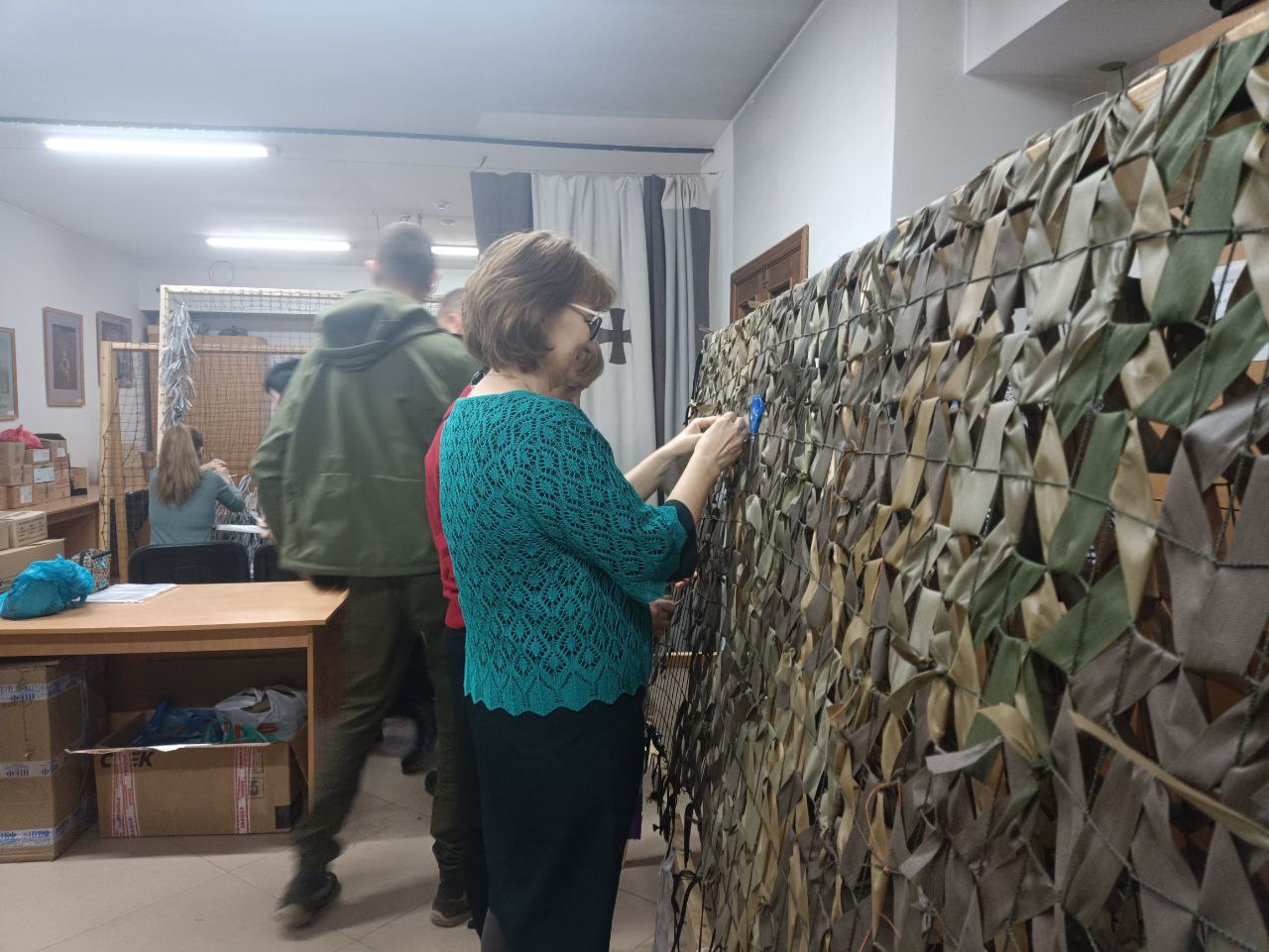 В рамках акции волонтеры занимались изготовлением маскировочных сетей и накидок «Леший», браслетов, антидроновых штор, а также армейского сухого душа.