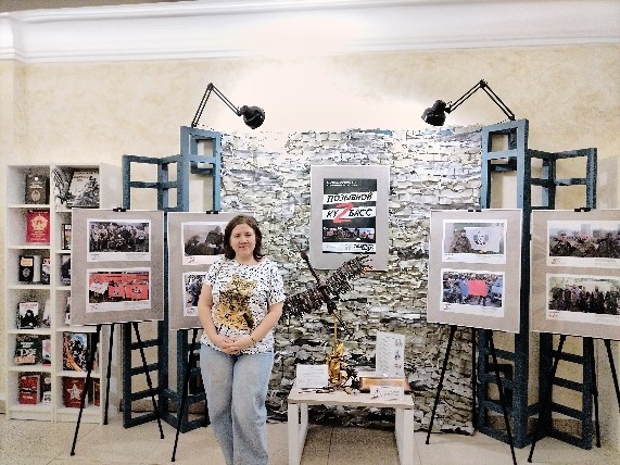 На выставке мы с волнением и гордостью посмотрели фотографии из личных архивов кузбассовцев, сделанные ими в зоне специальной военной операции, которые сотрудники библиотеки оформили в тематическую фотовыставку, познакомились с книгами о Великой Отечественной войне и новой отечественной фронтовой прозой и поэзией.