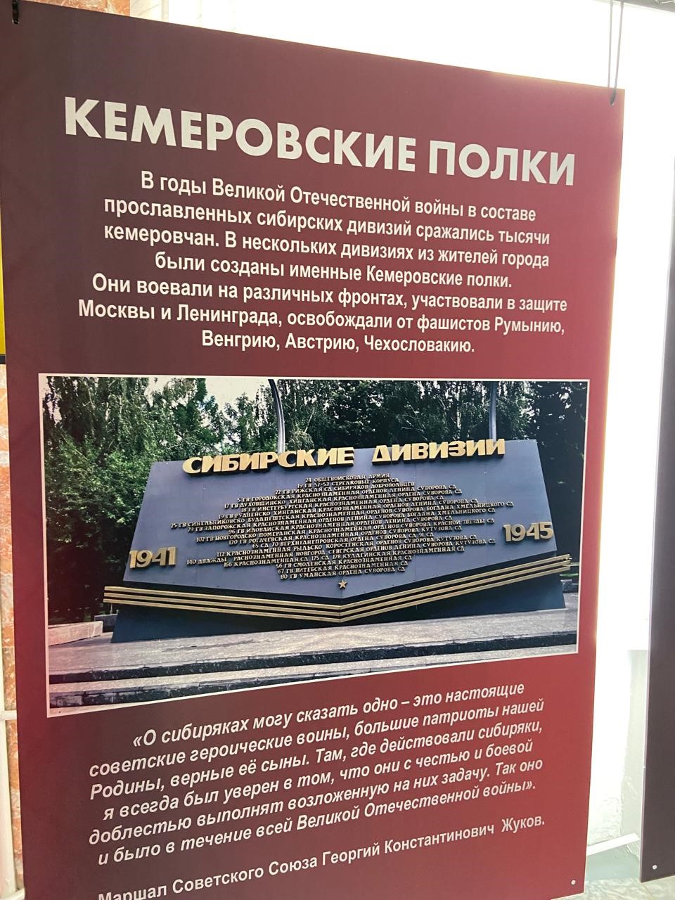 «Там, где действовали сибиряки, я всегда был уверен в том, что они с честью и боевой доблестью выполнят возложенную на них задачу» - отмечал мужество сибиряков Маршал Г.К. Жуков.