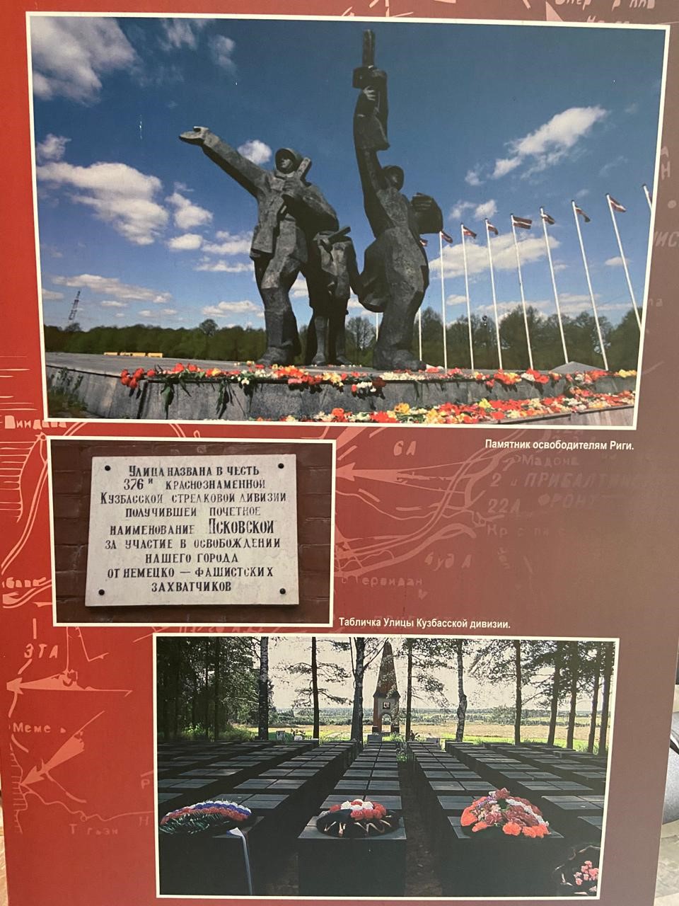 Сотрудники Южно-Сибирского межрегионального Управления Росприроднадзора посетили передвижную выставку, посвященную именным Кемеровским полкам Великой Отечественной войны, которую подготовил Кемеровский музей-заповедник «Красная Горка». Кемеровские полки в годы войны входили в состав 303- й Верхнеднепровской Краснознаменной, 376- й Краснознаменной Кузбасско-Псковской и 22- й гвардейской Сибирско-Рижской добровольческой стрелковых дивизий. Тысячи кемеровчан участвовали в обороне Москвы и Ленинграда, освобождали Латвию, Румынию, Венгрию, Австрию, Чехословакию.