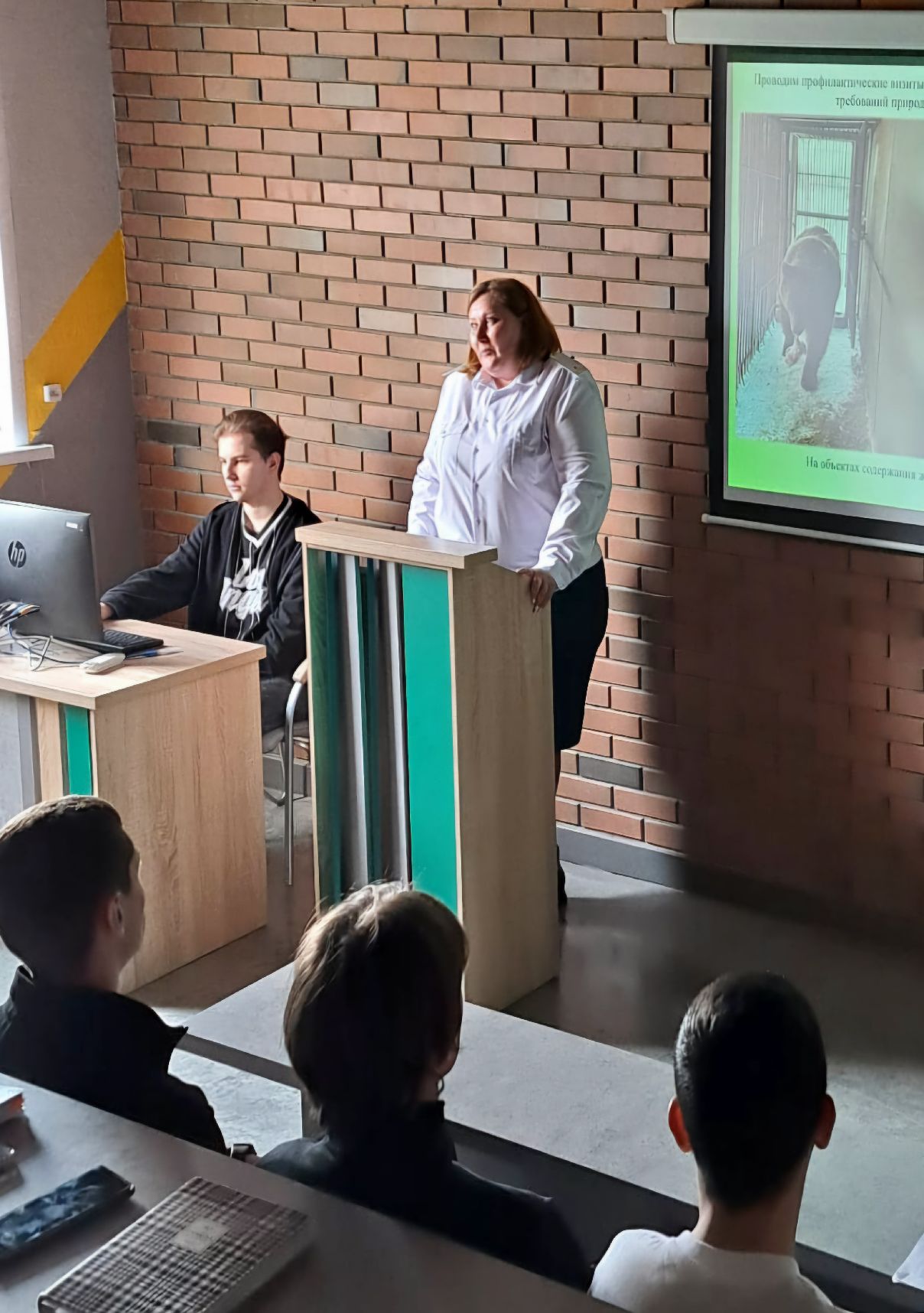 Инспекторы рассказали студентам о том, какие органы управления в сфере природопользования есть в Российской Федерации, какие полномочия отнесены в компетенции Росприроднадзора и его территориальных органов, какие проблемы стоят перед службой, какие задачи уже решены. Особый интерес у студентов вызвал рассказ о спасении редких животных, их лечении, реабилитации, выпуске в природу – о той ежедневной работе, которую выполняет служба в целях сохранения биоразнообразия и редких видов животных, которые обитают в Алтайском крае.