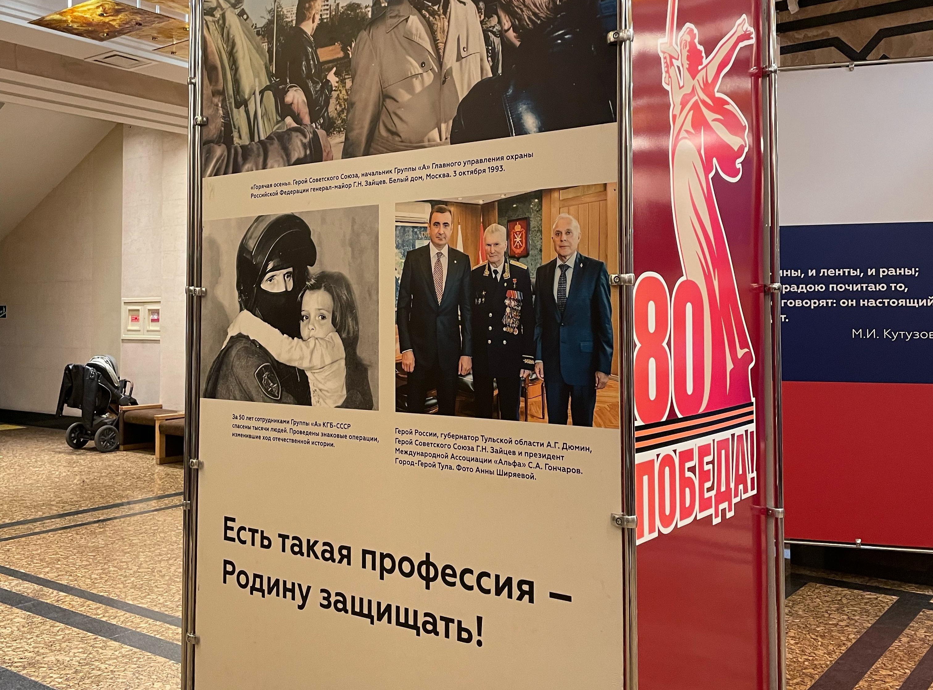 Далее посетители осмотрели передвижную фотовыставку «Альфа.50. Полвека первые», посвященную 50-летию со дня основания группы специального назначения «Альфа» ФСБ России по борьбе с терроризмом. Бойцы «Альфы» спасают жизни и обезвреживают террористов. Сегодня бойцы подразделения решают задачи в зоне СВО.