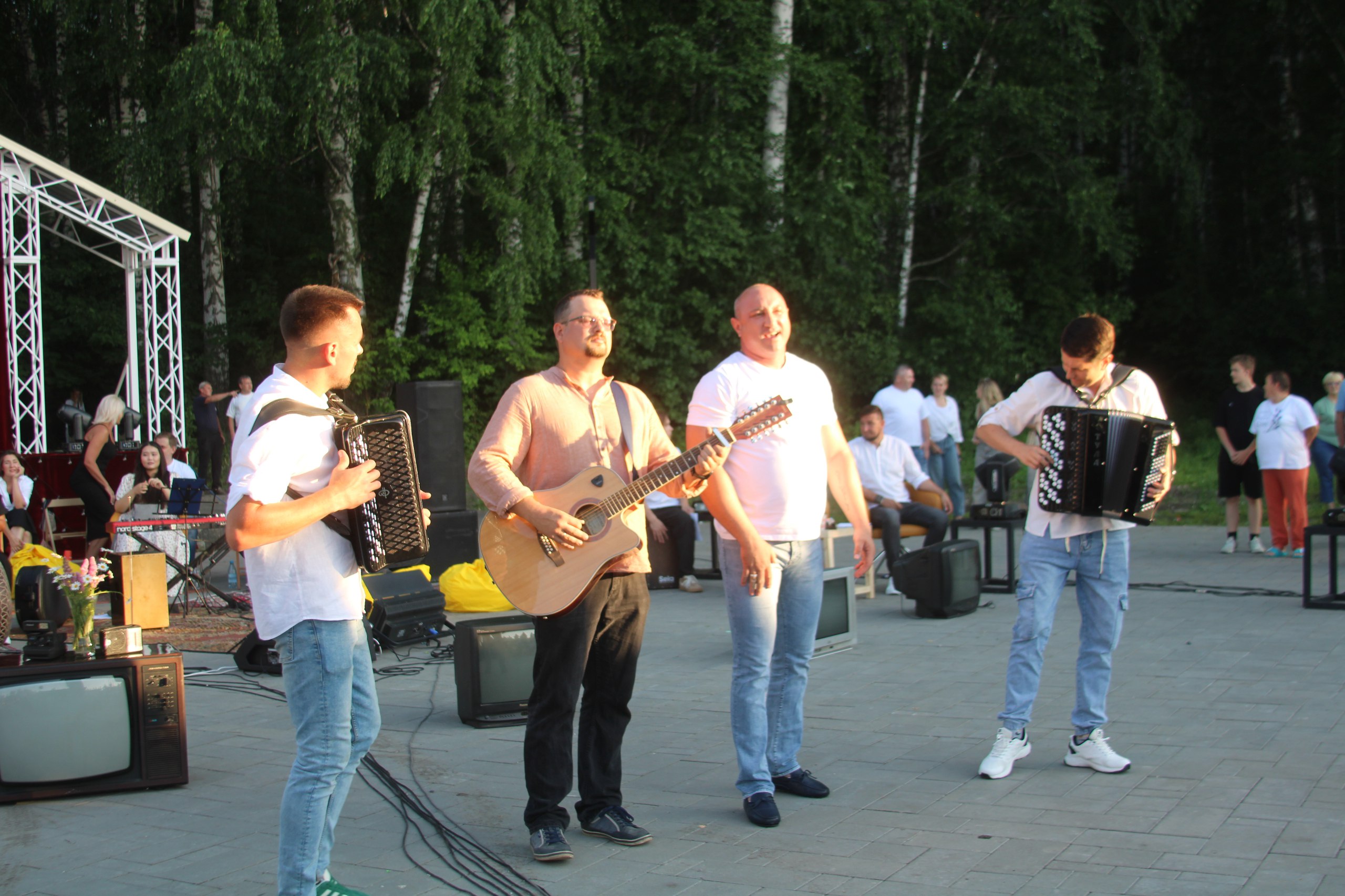 Вечером в Парке «Березовая роща» в с.Майма состоялся квартирник «Включите свет». Участники концерта и зрители пели песни военных лет.