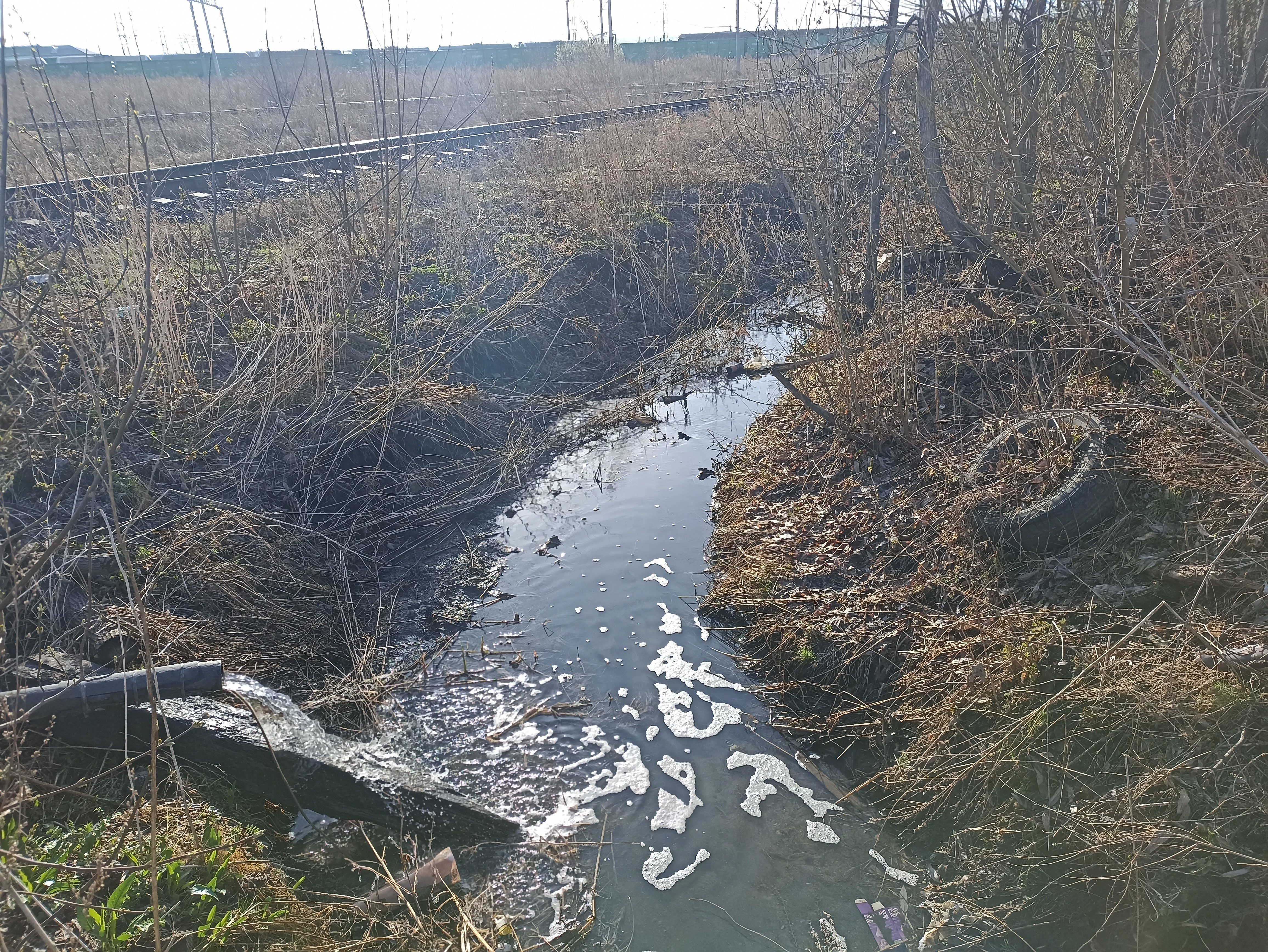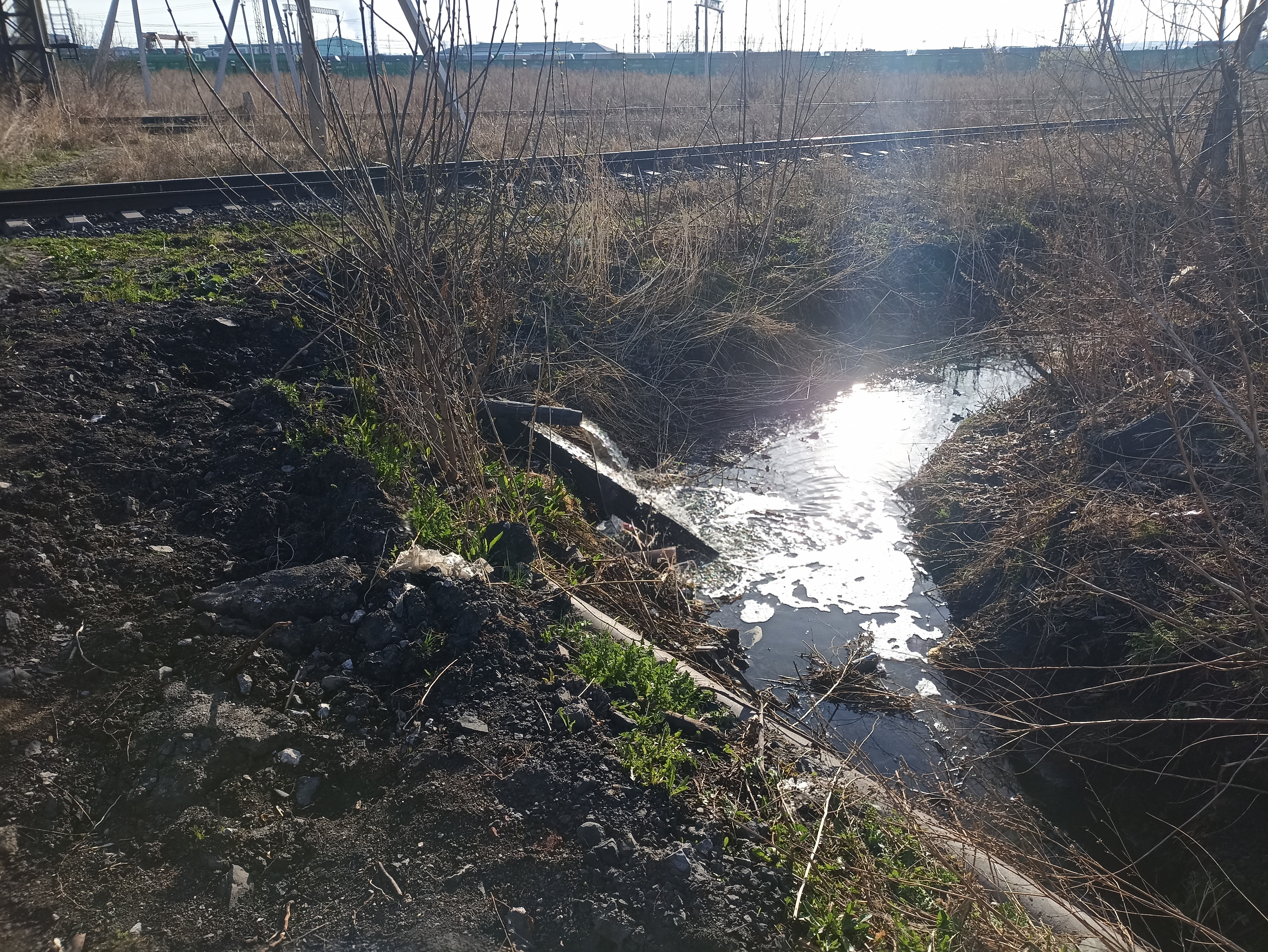 В ходе выездного обследования зафиксированы следы сброса жидких отходов, заболоченность территории, излив стоков с территории ООО «Беловский элеватор».