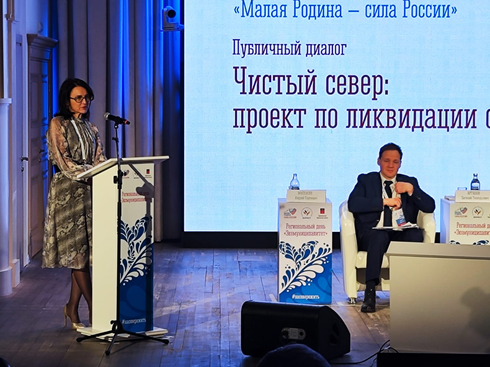 На площадке «Чистый север: проект по ликвидации свалок» Елена Макарова в качестве приглашенного эксперта приняла участие в обсуждении вопросов организации ликвидации несанкционированных свалок, осуществления муниципального земельного контроля, организации обращения с отходами.