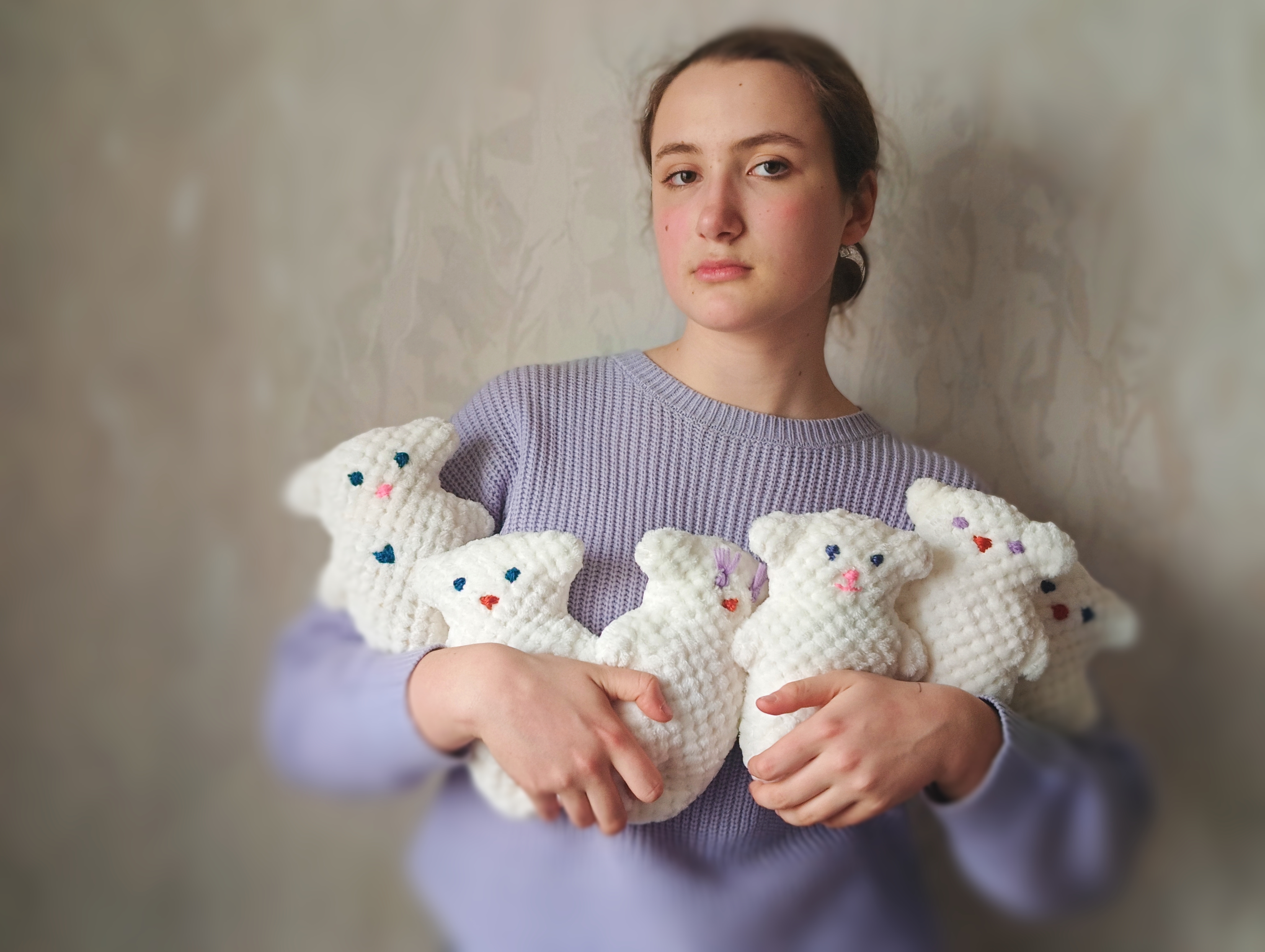 Дети сотрудников Межрегионального управления Росприроднадзора по Нижегородской области и Республике Мордовия – традиционно одни из самых активных участников всех экологических акций и мероприятий, проводимых в регионе. Свои природоохранные проекты и творческие работы они ежегодно представляют и на Международную детско-юношескую премию «Экология – дело каждого». Так что с символом конкурса – белым медвежонком Умкой ребята хорошо знакомы. И идею сшить или связать такую игрушку в подарок ветеранам Великой Отечественной войны она активно поддержали.
