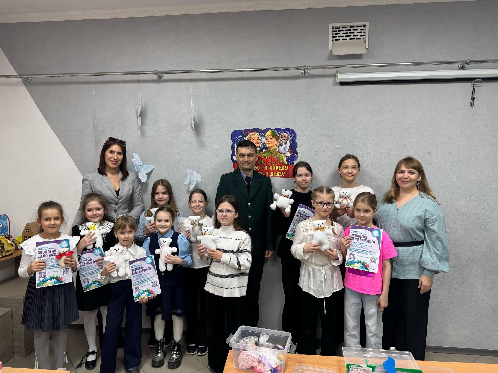 Участники акции своими руками создали очаровательных мишек Умок – символ Премии «Экология – дело каждого», а также написали трогательные письма для ветеранов с пожеланиями здоровья, долголетия и благодарностью за Победу в Великой Отечественной войне.