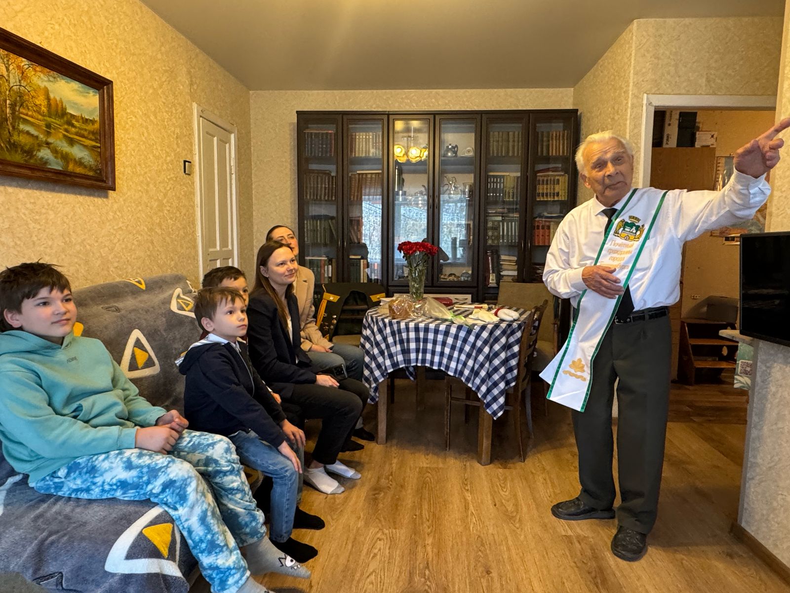 С искренними поздравлениями с наступающим праздником 80-летия Победы сотрудники Уральского межрегионального управления Росприроднадзора и ребята из Муниципального бюджетного учреждения дополнительного образования – Городской детский экологический центр (МБУ ДО - ГДЭЦ) пришли в гости к ветерану Николаю Спиридоновичу Власову из Екатеринбурга.