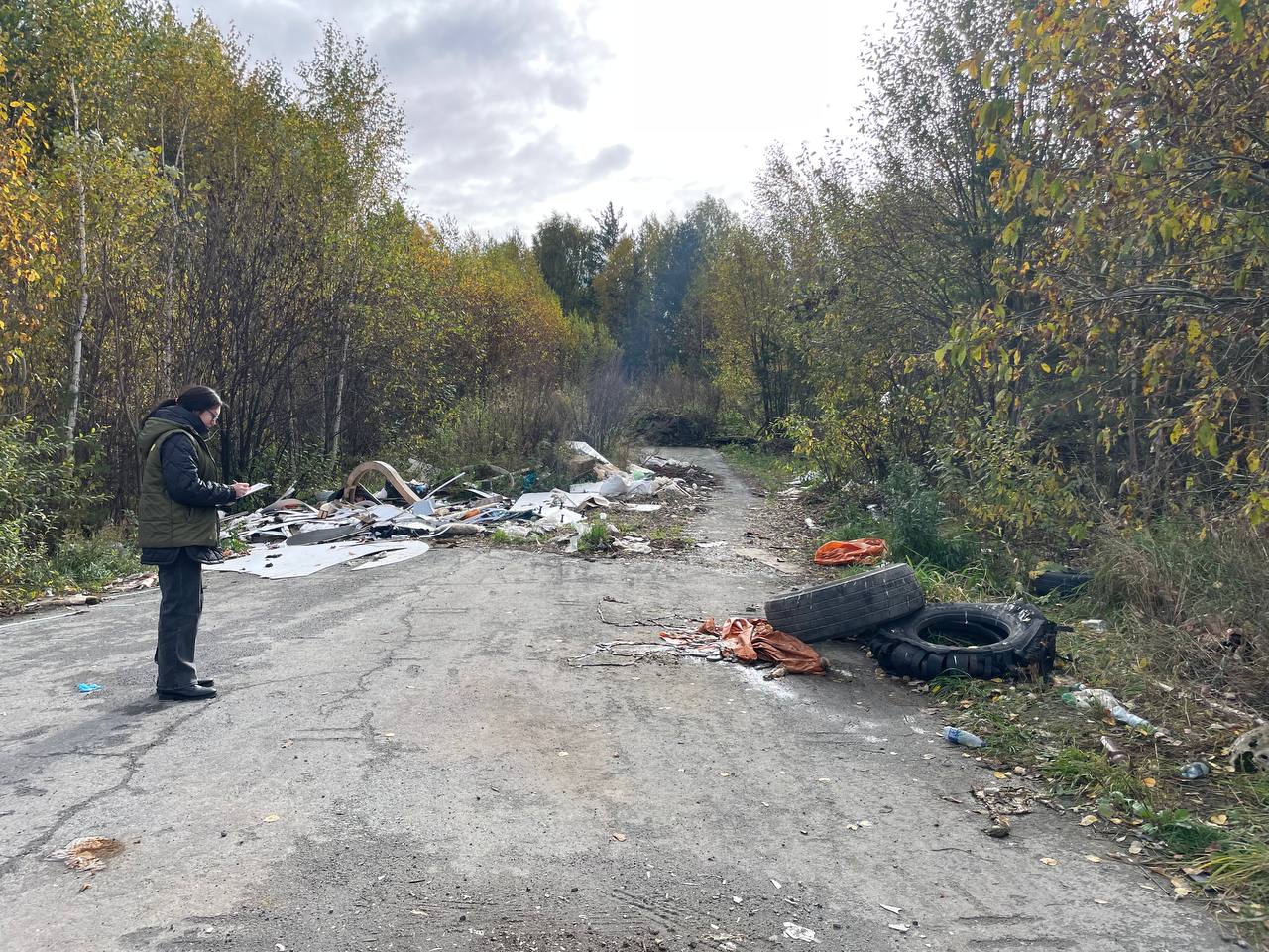 При проведении выездного обследования указанной территории, не предназначенной для размещения отходов производства и потребления, Управлением зафиксировано несанкционированное размещение твердых коммунальных, древесно-растительных отходов, отходов лесопиления, а также отходов резиновых шин.