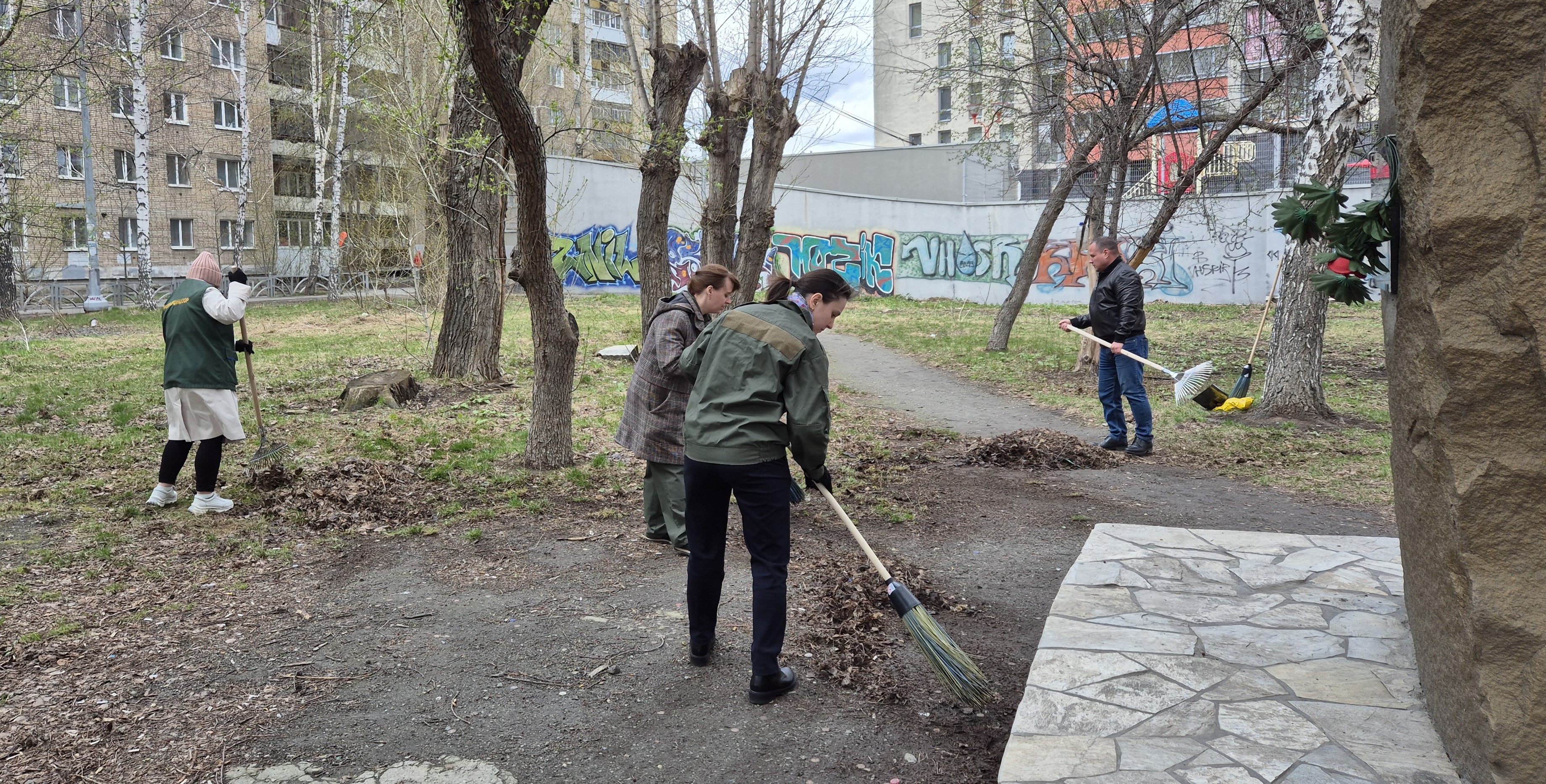 В Магнитогорске субботник был организован на территории Мемориала «Братские захоронения умерших в госпиталях города Магнитогорска воинов Великой Отечественной войны 1941-1945 гг.».