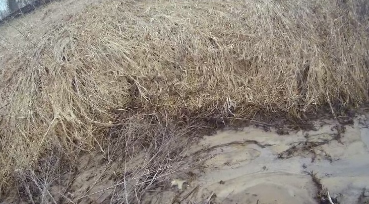 В ходе осмотра установлены следы течи жидкости на почве по рельефу местности со стороны полей фильтрации АО «Сахарный комбинат «Отрадинский» в сторону Оки вблизи трассы Орел-Мценск.