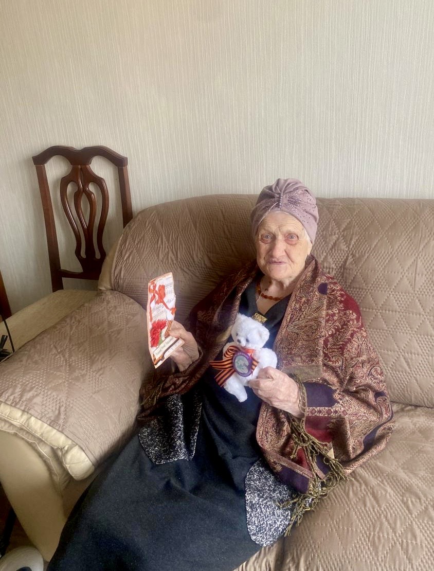 Мягкую игрушку и открытку Земсковой Софии с искренними пожеланиями вручили Ветерану Великой Отечественной войны Истоминой Лилии Васильевне.