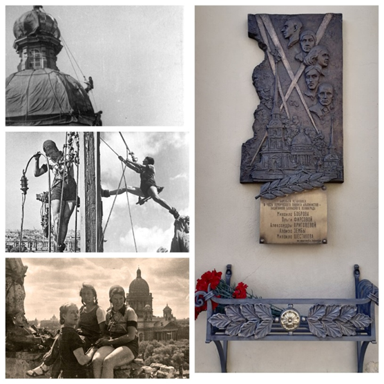 Во время блокады Ленинграда фашисты проводили артобстрелы, используя шпили исторических зданий и купола храмов как ориентиры. Чтобы замаскировать эти объекты, была сформирована группа из 30 альпинистов. Они проводили работу по закрашиванию шпиля Петропавловского собора в 40-градусные морозы, работая на высоте более 122 метров ночью с кистями в руках.
