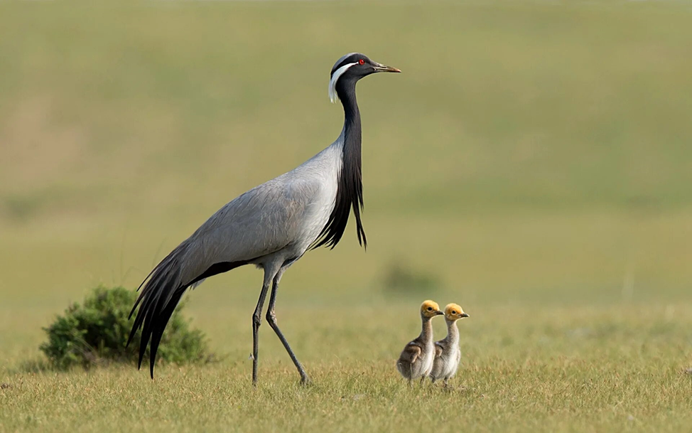 Журавль-красавка (Anthropoides virgo)- редкая птица, занесённая в Красную книгу Российской Федерации. В России эти птицы распространены в степях и полупустынях Европейской части, Урала, Западной Сибири, Алтая, Тувы, Забайкалья.