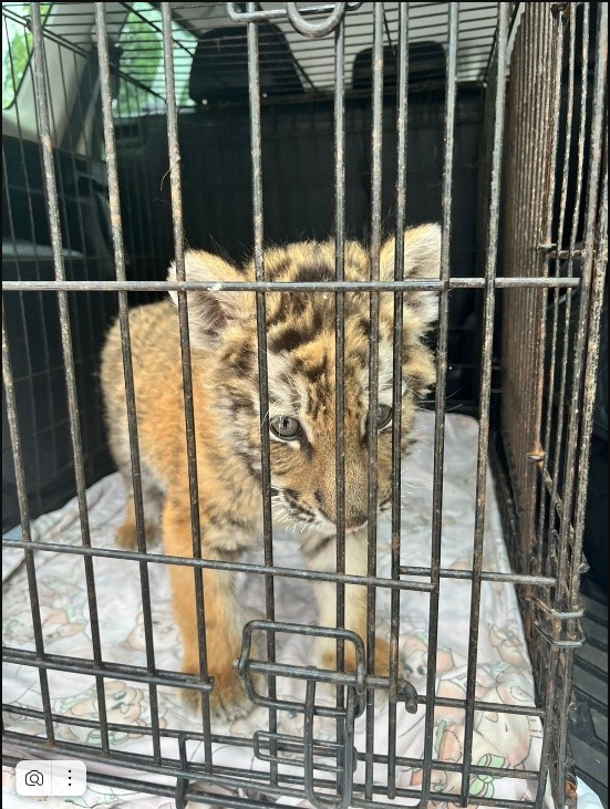 В Приазовское межрегиональное управление Росприроднадзора поступила информация о маленьком тигренке, незаконно находящегося на передержке на территории Луганской Народной Республики, информация о необходимости передачи тигренка была незамедлительно направлена в Центральный Аппарат Росприроднадзора. По решению ЦА Росприроднадзора, руководитель Управления Андрей Соколов выехал на указанное место для контроля и организации взаимодействия в передаче амурского тигрёнка в АНО «Хоспис для крупных кошек «Дом тигра» при содействии с МВД ЛНР и Минприроды ЛНР.