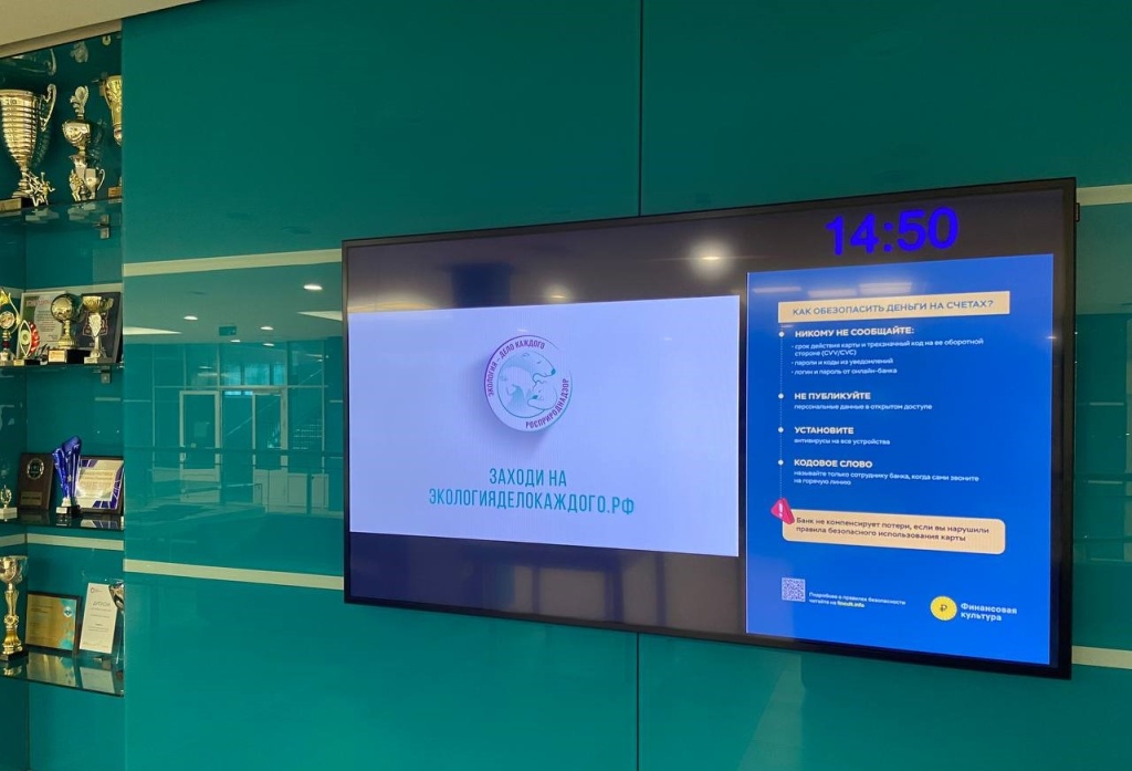 На медиаэкранах Центра транслируются видеоролики, рассказывающие об экологической премии, номинациях и призах.